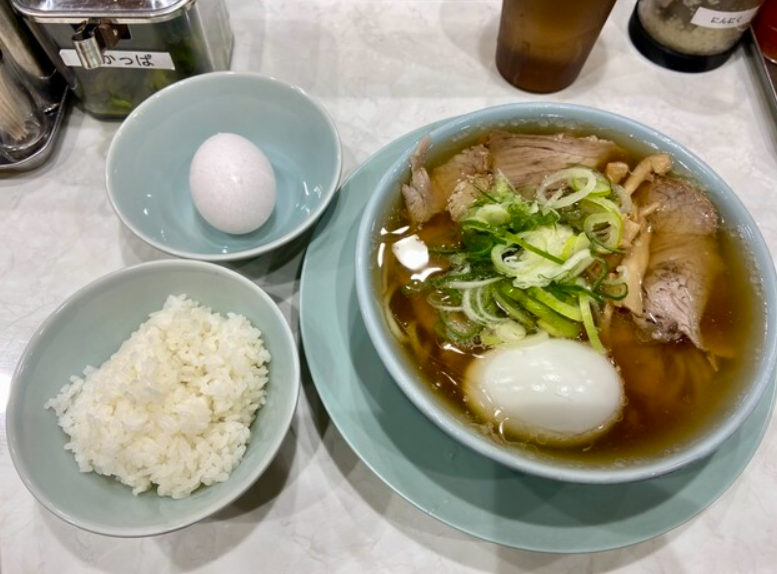 渋谷 かっちゃんラーメンの看板商品は「中華そば」(750円)。清湯醤油スープと中太麺、シンプルな具材で構成されたちゃん系の王道です。肉をたっぷり味わいたい人には「チャーシュー麺」、さっぱり食べたい人には「わかめ中華そば」もおすすめ。トッピングには味玉、ネギ増し、追加チャーシューなどがあり、好みに応じてカスタマイズできます。また無料ライスが付く点は大きな魅力で、スープをかけたりチャーシューと合わせたりと楽しみ方が広がります。提供スピードも速いため、忙しいランチタイムや飲み会帰りにも利用しやすいのが特徴です。シンプルながら満足感が高く、何度訪れても飽きないメニュー構成が、多くのリピーターを生み出しています。