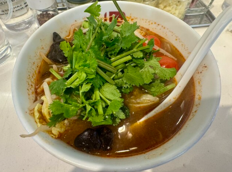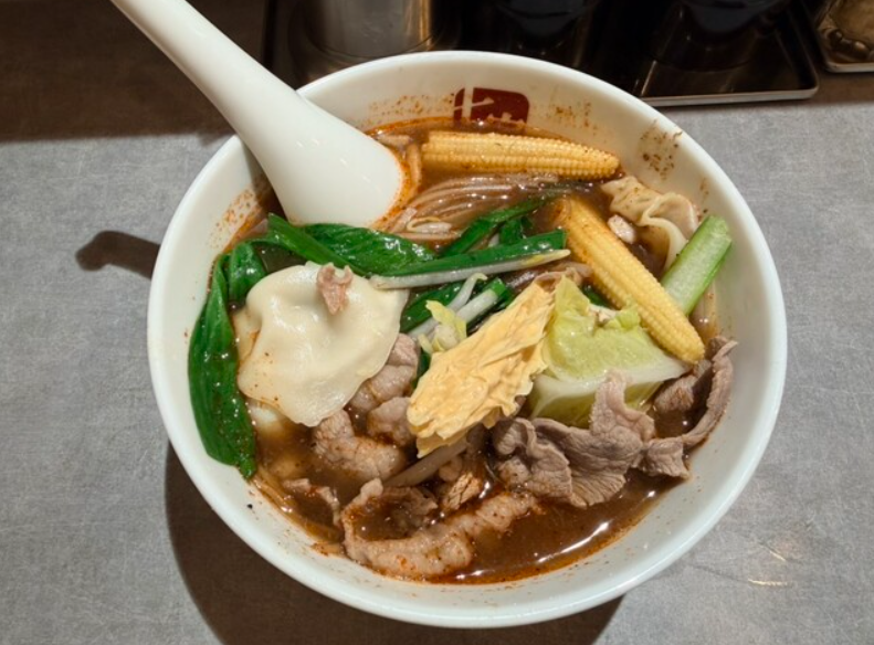 実際に八千代きりちゃんラーメンを食べてみると、まずその迫力あるビジュアルに圧倒されます。レンゲですくったスープをひと口飲めば、醤油のキレと豚骨の深いコク、そして背脂のまろやかさが絶妙に調和し、ついついもう一口とレンゲが止まらなくなります。続いて麺をすすれば、もちもちとした太麺がスープをしっかりと抱き込み、噛むごとに小麦の風味が広がり、濃厚さとの一体感を楽しめます。チャーシューは分厚くジューシーで、口の中でほろりと崩れる食感が印象的。さらに野菜のシャキシャキ感が濃厚さをリセットしてくれるため、最後まで食べやすいのも嬉しいポイントです。途中でにんにくを加えるとパンチが増し、味の変化も楽しめます。気づけばスープまで完食してしまう満足度の高い一杯でした。