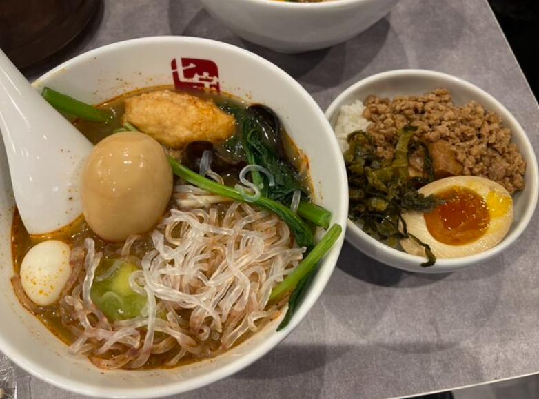 - 麺を入れ、トッピングを盛り付けたら完成。