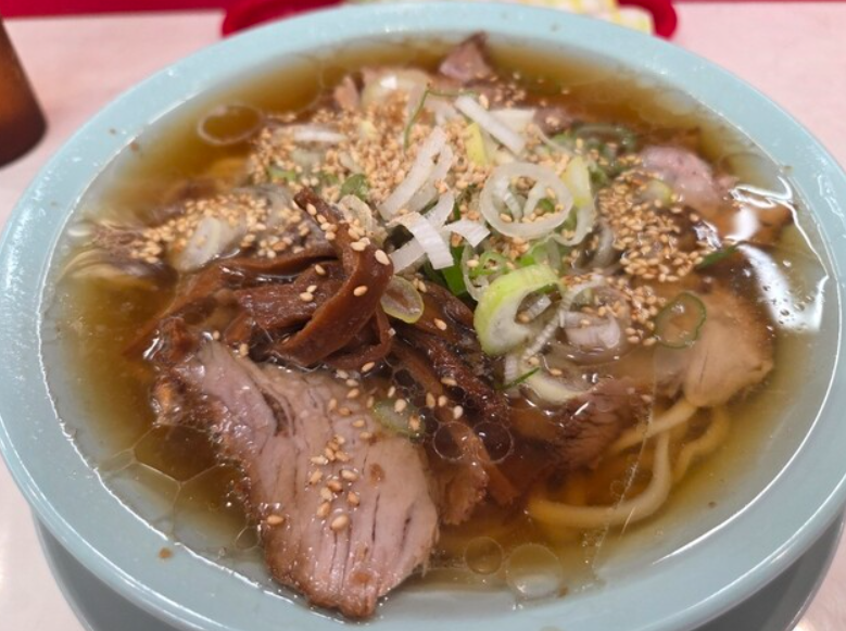 実際に「なぎちゃんラーメン 大森駅前」を食べてみると、まずその見た目の迫力に驚かされます。レンゲですくったスープを口に含めば、醤油のキレと豚骨のコク、背脂のまろやかな甘みが絶妙に調和し、思わずもう一口とレンゲが止まらなくなる中毒性を実感。麺をすすれば、もちもちとした太麺がスープをしっかりと絡め取り、噛むたびに小麦の香りと旨味が広がります。チャーシューは分厚く柔らかで、肉の旨味が口いっぱいに広がり、食べ応え抜群。さらに野菜のシャキシャキ感が濃厚さを中和し、最後まで食べやすいバランスに。途中でニンニクを加えるとパンチが効き、味の変化を楽しめます。豪快さと食べやすさを兼ね備えた一杯は、大森駅前の名物と呼ぶにふさわしい完成度でした。