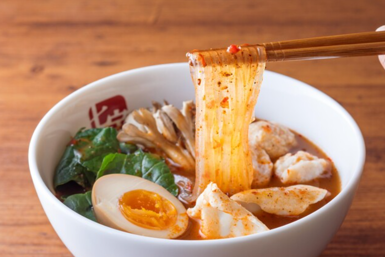- 麺を入れ、トッピングを盛り付けたら完成。
