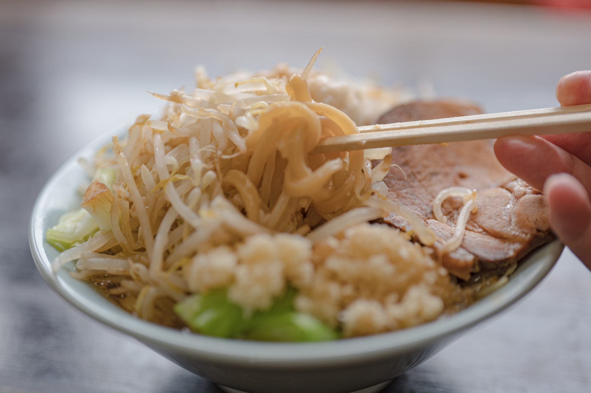 二郎系ラーメンは、1968年に創業した「ラーメン二郎」から生まれた独自のラーメン文化です。その最大の特徴は、濃厚な豚骨醤油スープ、極太麺、背脂、そして山のように盛られた野菜。一般的なラーメンと比べると圧倒的なボリュームを誇り、食べる人に強烈なインパクトを与えます。さらに、注文時の「ニンニク入れますか?」という独特のやり取りや、トッピングを自由に調整できる“コール文化”も魅力のひとつです。単なる食事ではなく“イベント”として楽しめる点が、二郎系を唯一無二の存在にしています。