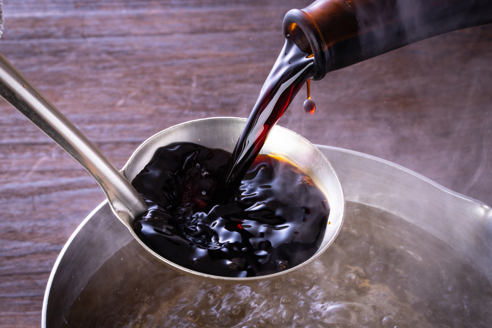 別鍋で濃口醤油、みりん、砂糖、にんにくをベースに醤油ダレを作っておきます。煮込んだスープと合わせることで、二郎系らしい力強い味わいに仕上がります。タレの濃さはお好みで調整可能です。