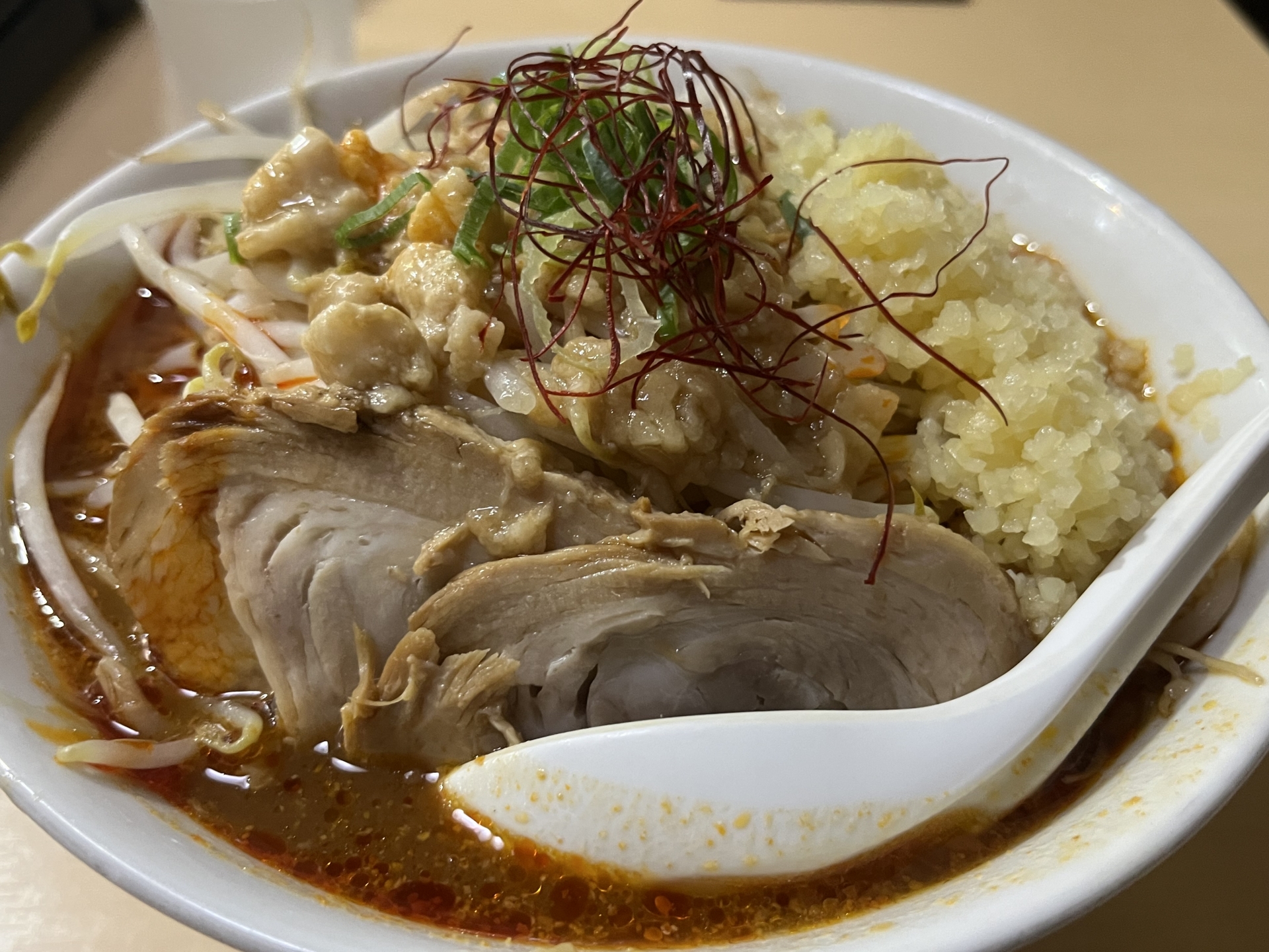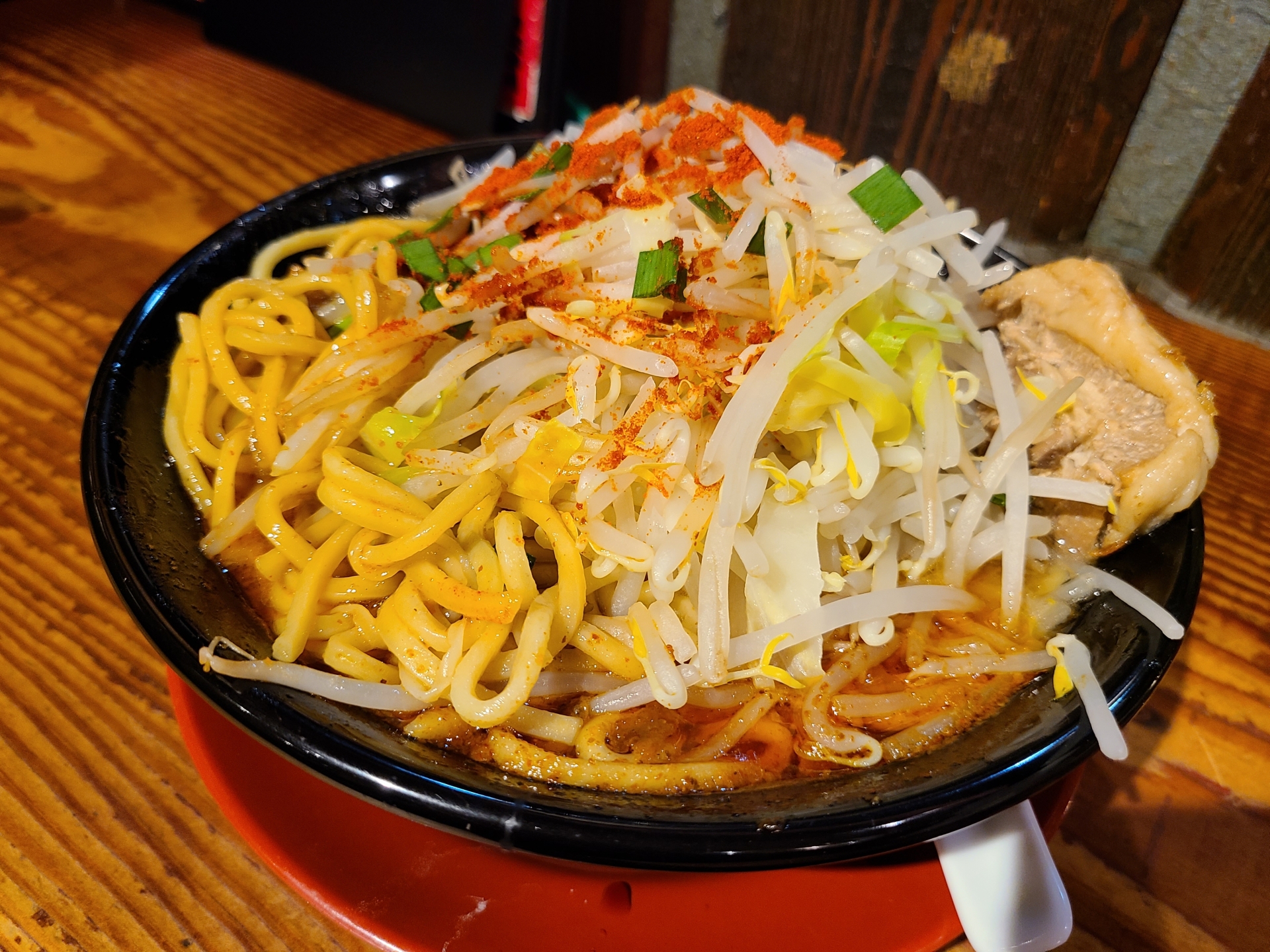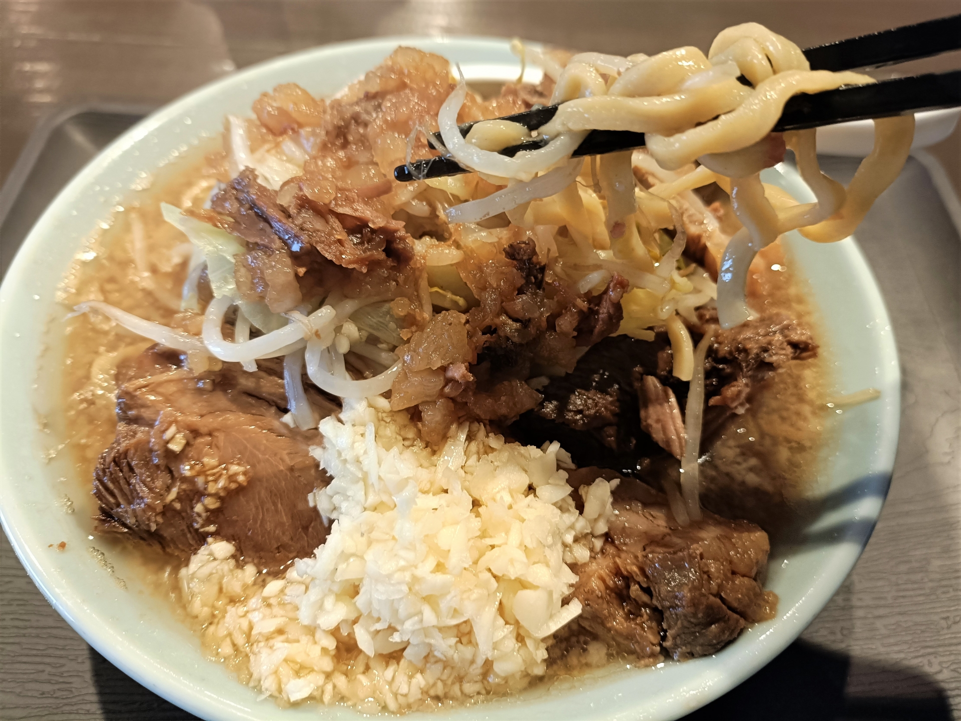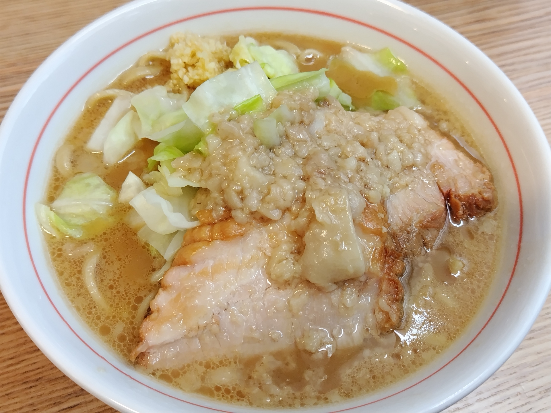 背脂は極太麺にコクと甘みをまとわせ、噛むごとに旨味が広がります。さらに刻みにんにくを絡めれば、パンチのある風味が加わり、麺の存在感が一層際立ちます。シンプルな麺にトッピングが重なり合うことで、二郎系ならではの“爆発力のある味わい”が完成します。