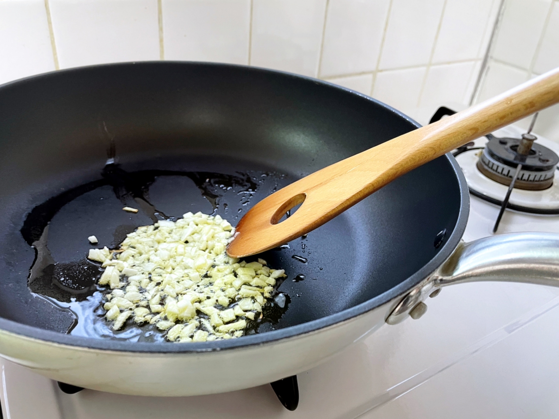 - 別の鍋に水を入れ沸騰させ、麵を茹でる。ゆであがった麺は湯を切る。