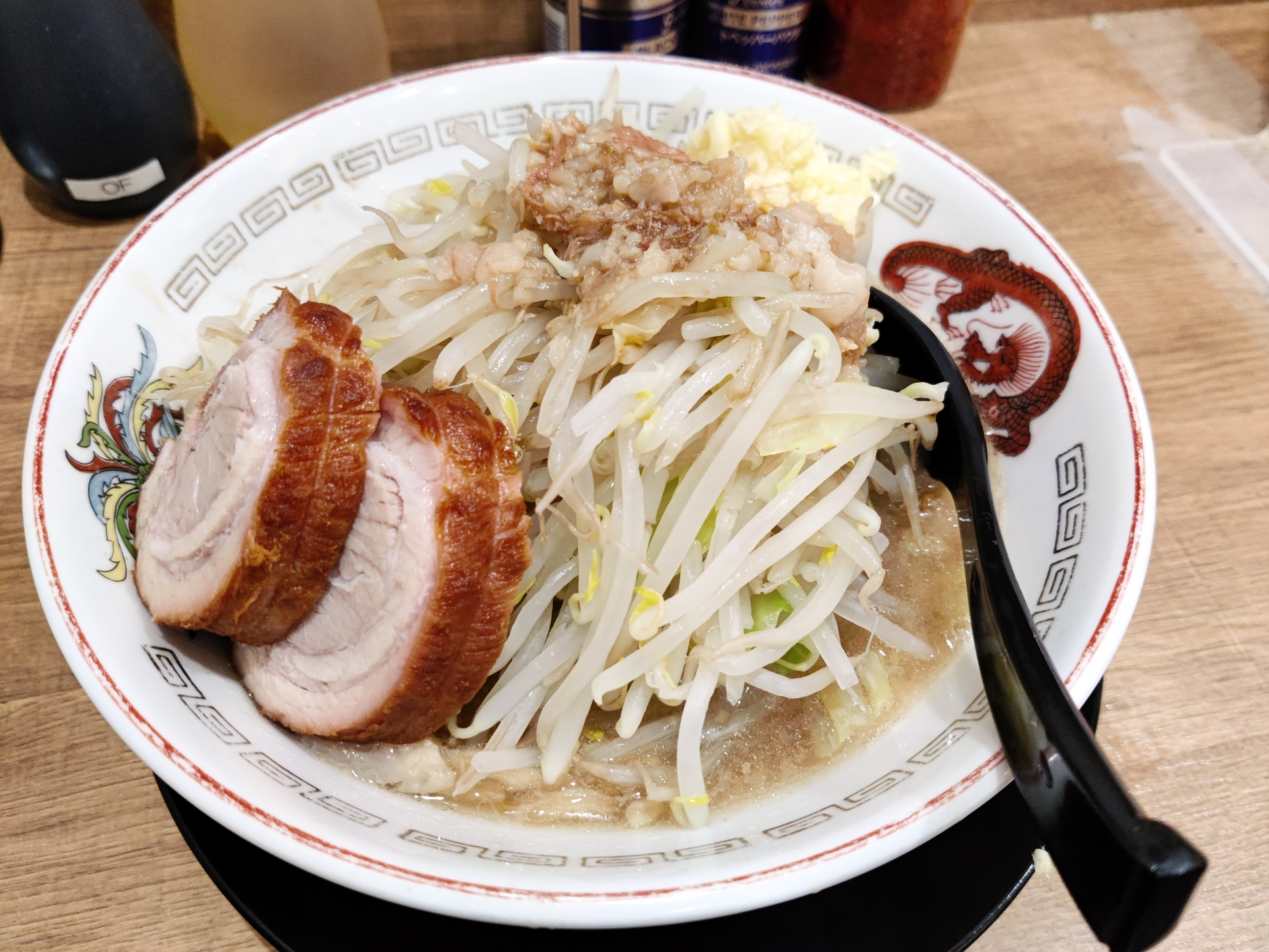 カラメを追加すると、シャキシャキのもやしやキャベツと一緒に食べたときに醤油の旨味が際立ちます。また、極太麺に絡めると濃厚さが増し、一層クセになる味わいに。スープ・麺・トッピングが三位一体となり、最後まで食欲を引き立ててくれるのがカラメの魅力です。