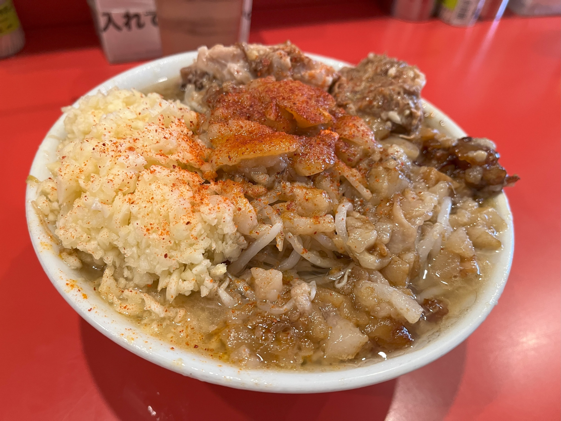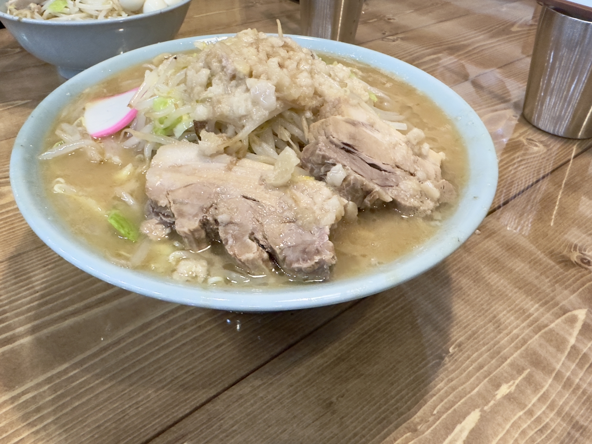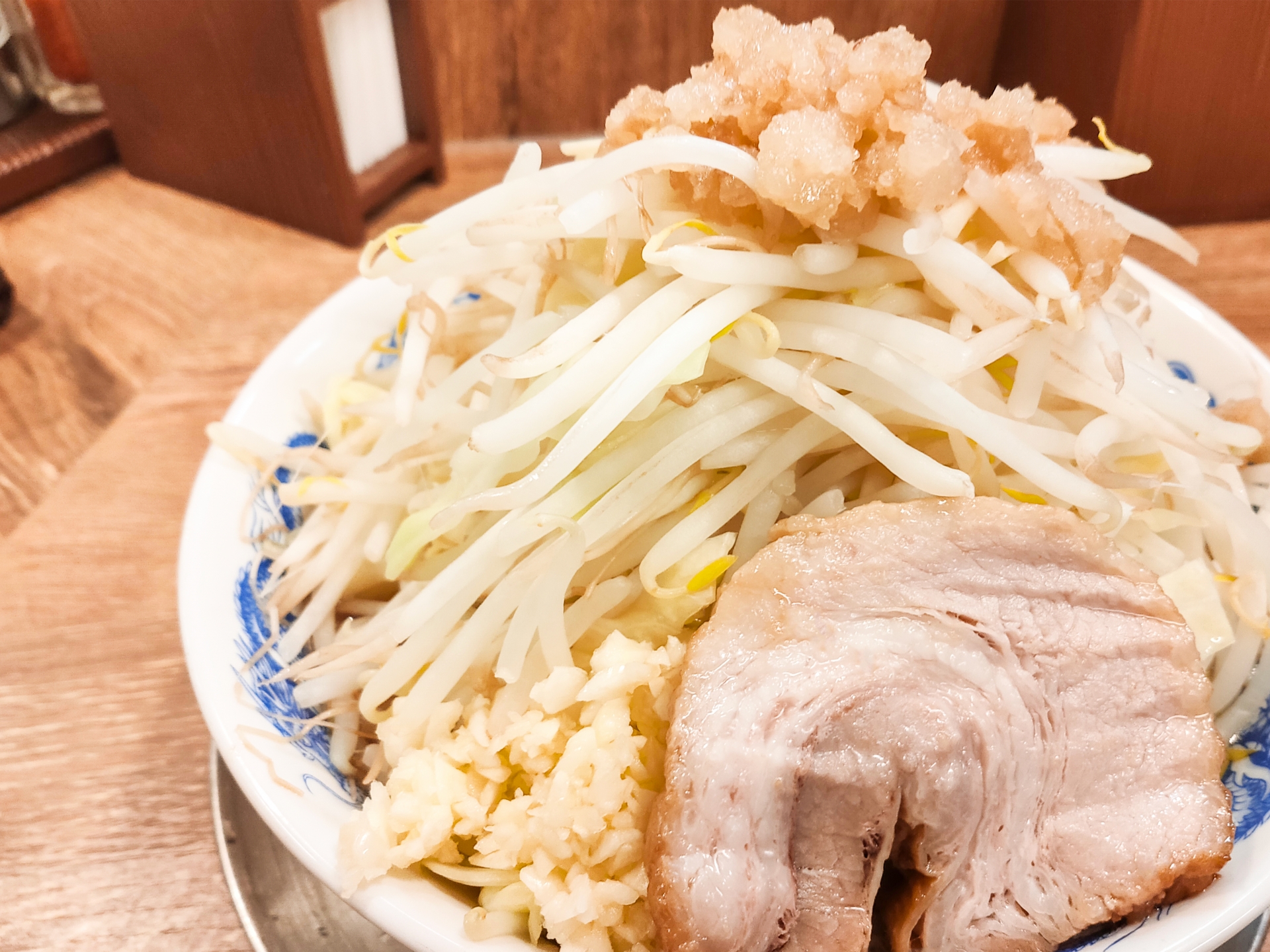 コール時に「ニンニクマシ」「マシマシ」と伝えると、丼の中に山盛りの刻みにんにくが追加されます。その破壊力は絶大で、スープ全体がガツンとした辛みと香りに包まれ、二郎系の迫力を倍増させます。特に極太麺との相性は抜群で、パンチの効いた一杯に仕上がります。ただし香りが強烈に残るため、翌日の予定を考慮して挑戦するのがおすすめです。