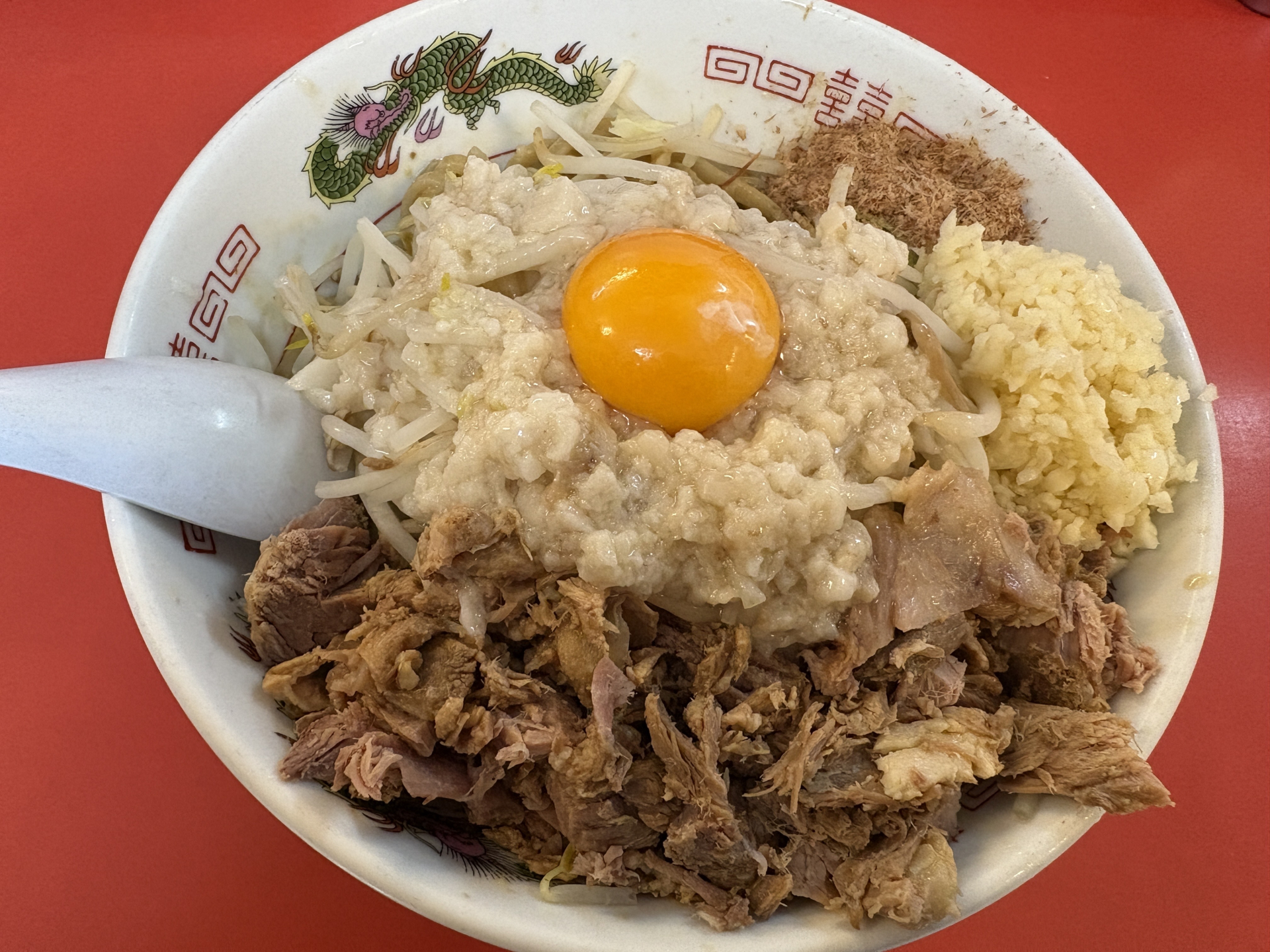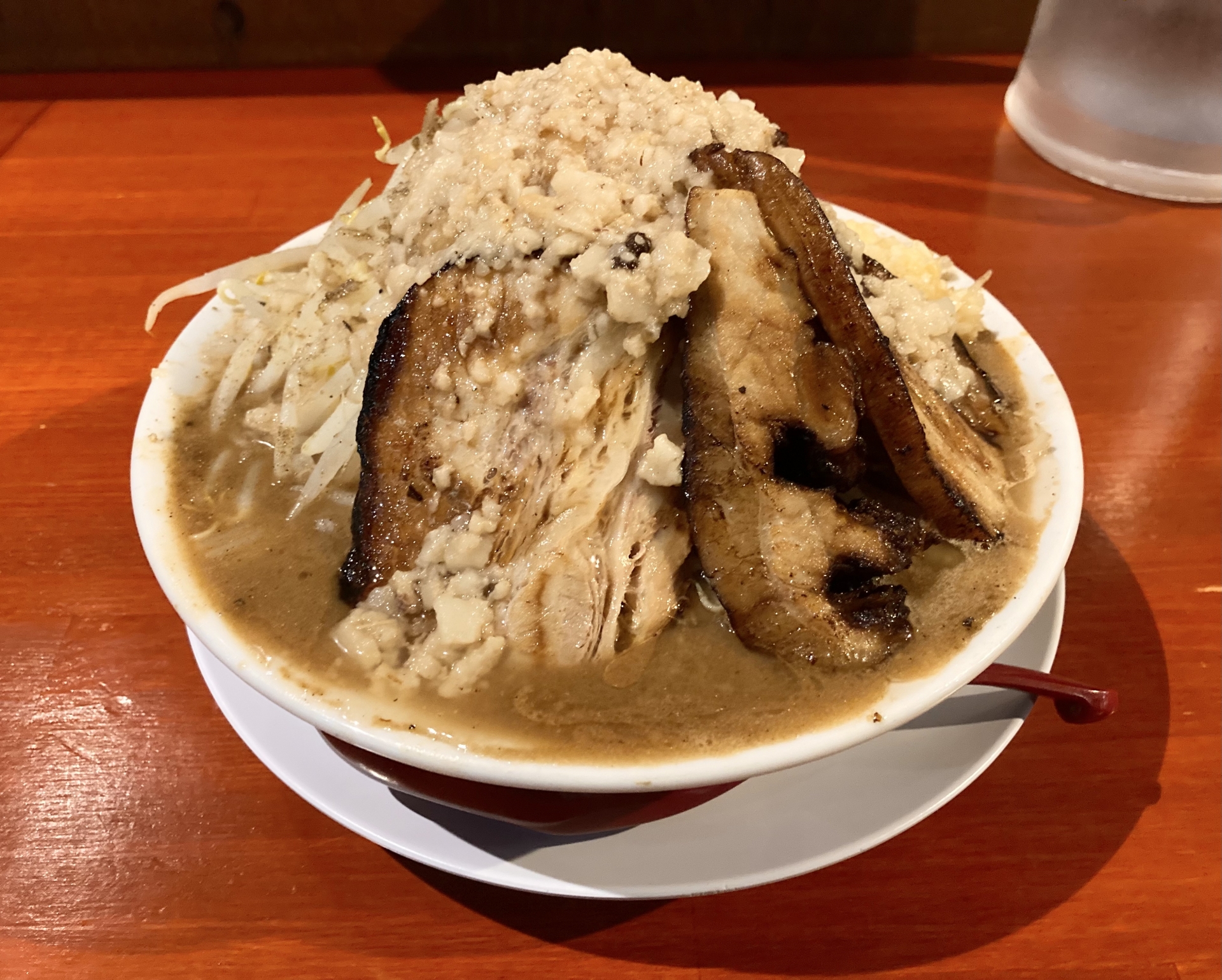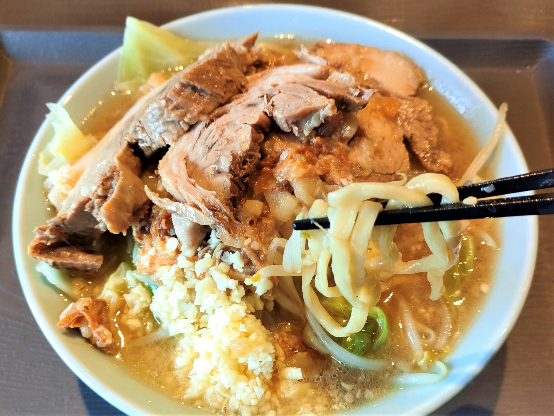 コール時に「ニンニクマシ」「マシマシ」と伝えると、丼の中に山盛りの刻みにんにくが追加されます。その破壊力は絶大で、スープ全体がガツンとした辛みと香りに包まれ、二郎系の迫力を倍増させます。特に極太麺との相性は抜群で、パンチの効いた一杯に仕上がります。ただし香りが強烈に残るため、翌日の予定を考慮して挑戦するのがおすすめです。