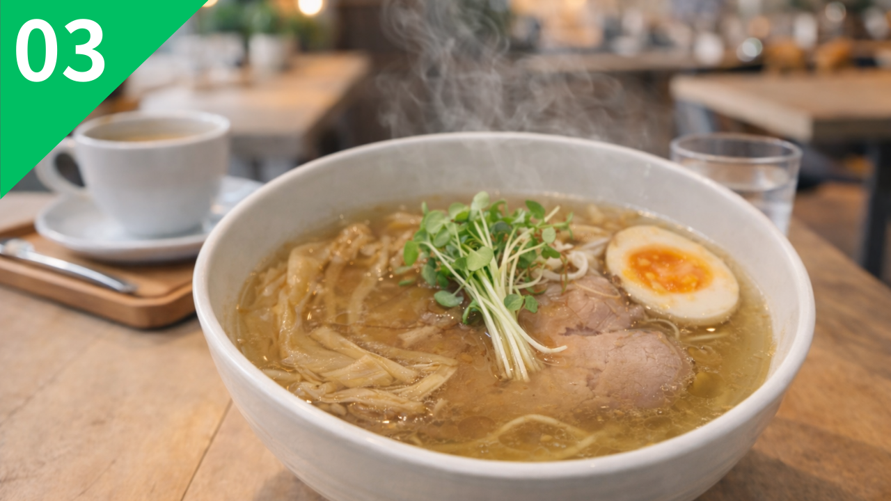 麺や けせらせらは、札幌市北区で丁寧な仕事ぶりが光るラーメン店です。素材本来の旨味を大切にしたスープは、やさしくも芯のある味わいが特徴。麺とのバランスも良く、最後まで飽きずに食べられる一杯に仕上がっています。落ち着いた雰囲気の中で、じっくりラーメンを味わえる点も魅力。札幌市北区で毎日でも食べられるラーメンを探している方におすすめの一軒です。