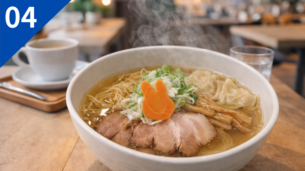 中華そば うさぎは、札幌市北区で優しい味わいのラーメンが人気の中華そば専門店です。澄んだスープは、鶏や魚介の旨味を丁寧に引き出しており、あっさりとしながらも深みのある味わいが魅力。細めの麺は喉越しが良く、スープとの一体感も抜群です。シンプルながら完成度の高い一杯は、幅広い世代から支持。札幌市北区で上品な中華そばを楽しみたい方におすすめです。