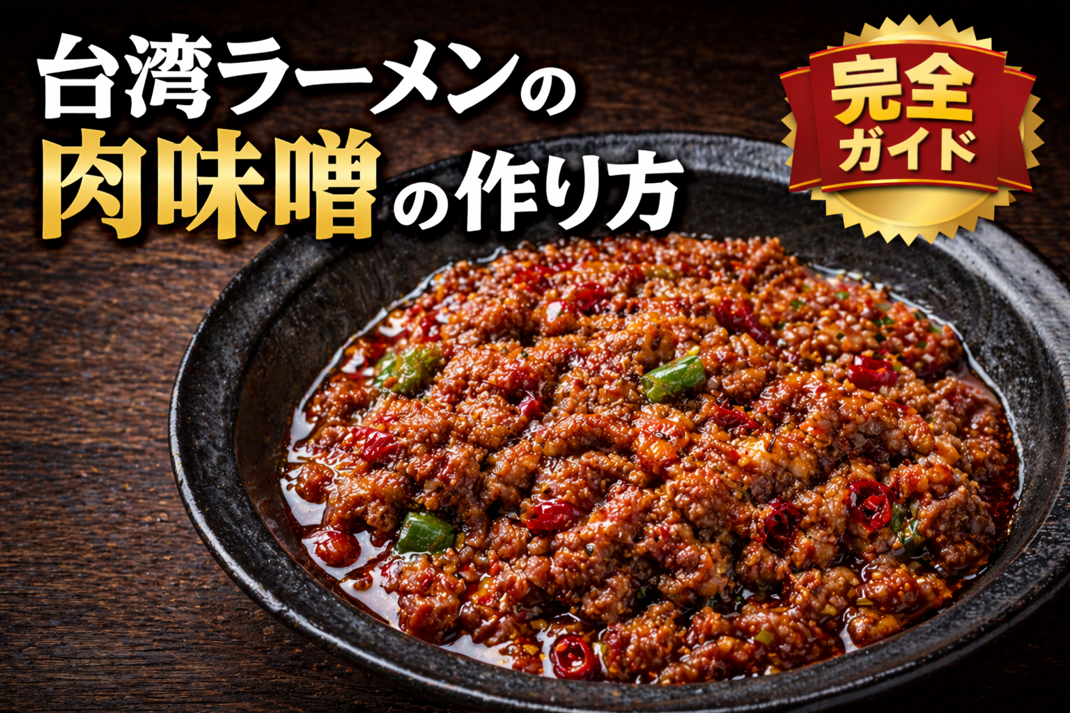 台湾ラーメンの肉味噌とは、主に豚ひき肉をベースに、にんにくや唐辛子をたっぷり使用して強い辛味と香りを引き出した中華系の肉味噌であり、名古屋発祥の台湾ラーメンにおいてスープと並ぶ味の核となる重要な要素で、刺激的でパンチのある味わいが特徴であり、一般的な担々麺の肉味噌と比べても辛味とにんにくの風味が際立っている点が大きな違いで、調理工程ではまず豚ひき肉を強火でしっかり炒めて水分を飛ばしながら旨味と香ばしさを引き出し、その後に刻んだにんにくや唐辛子を加えて一気に香りを立たせ、さらに醤油や酒、少量の砂糖などで味の骨格を整えつつ、ラー油を加えることで辛味とコクを重ねていき、シンプルながらも刺激と旨味が一体となった力強い味に仕上げるのがポイントであり、この肉味噌はラーメンの上にトッピングされることでスープに徐々に溶け出し、辛味と旨味が全体に広がりながら味の変化を生み出し、食べ進めるごとに深みと刺激が増していく構成となり、またニラなどの具材と組み合わせることで香りと食感のバランスが強化され、結果として台湾ラーメンの肉味噌は「辛味」「にんにくの香り」「旨味」の三要素を軸にした、強烈なインパクトと中毒性を持つ料理の中核パーツであるといえる。