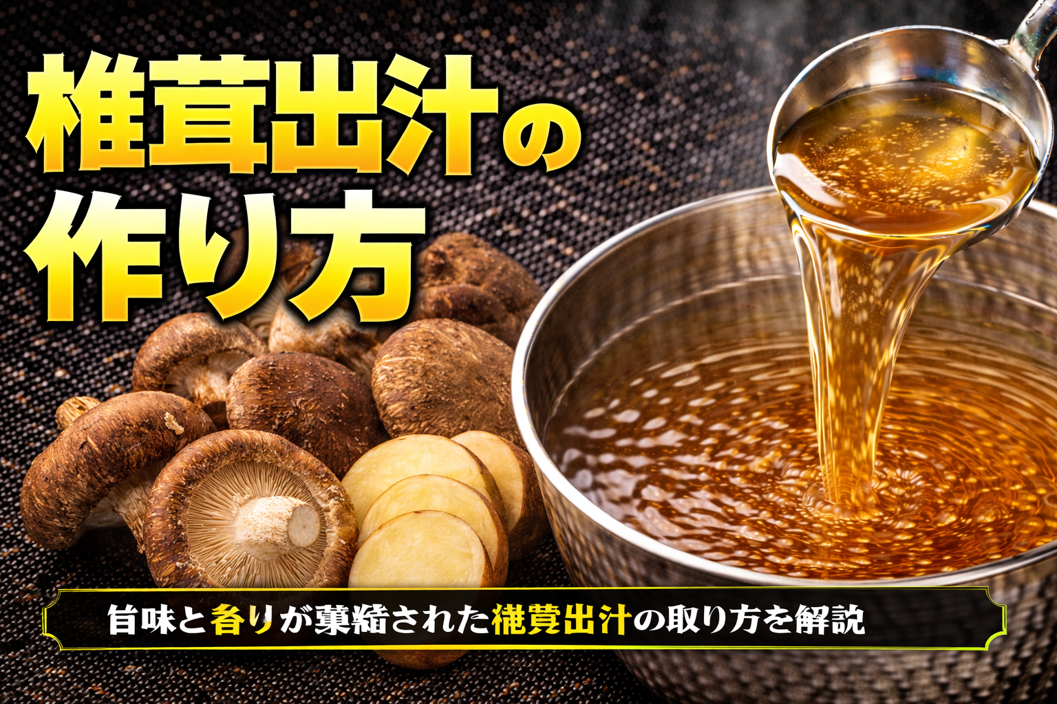 椎茸出汁とは、乾燥椎茸に含まれる核酸系旨味成分であるグアニル酸を主軸として構成される出汁であり、動物系や魚介系とは異なる「持続的で奥行きのある旨味」を形成する点に特徴がある。まず論点として、椎茸出汁は単体で強いインパクトを持つというよりも、味のベースラインを引き上げる「下支えの旨味」として機能する点に本質がある。これはグアニル酸が単独でも旨味を感じさせる一方で、グルタミン酸やイノシン酸と組み合わさることで相乗効果を発揮し、知覚される旨味が飛躍的に増幅されるという性質に由来する。次に分解すると、椎茸出汁の価値は「旨味の質」と「香りの設計」に分けて捉えることができる。旨味の質においては、角のないまろやかな広がりが特徴であり、スープ全体に厚みを与える役割を担う。一方で香りについては、乾燥工程によって生成される特有の芳香成分があり、これが和風的なニュアンスを付与するが、過剰になると支配的になりやすいため制御が必要となる。ここで整理すると、椎茸出汁は「強い主張を持つ出汁」ではなく、「他の要素を引き立てるための構造的な旨味層」として理解するのが適切である。さらに示唆として、ラーメンにおいて椎茸出汁を活用する場合、単なる代替素材としてではなく、味の奥行きを設計するためのレイヤーとして組み込むことで、動物系中心のスープに対して新たな表現軸を付与することが可能になる。このように椎茸出汁は、素材そのものの個性以上に、全体構造の中でどのように機能させるかが問われる出汁である。
