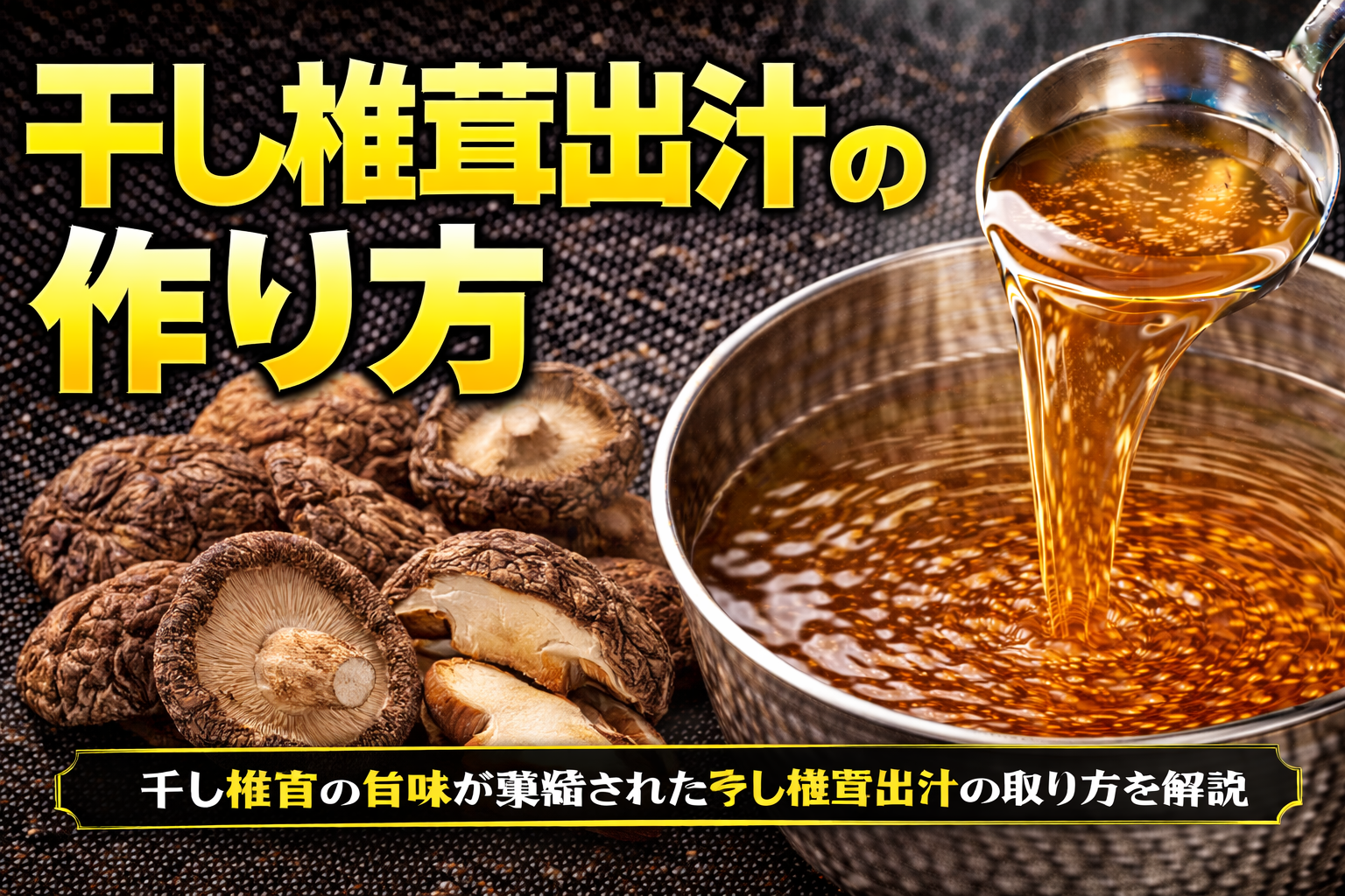 干し椎茸出汁とは、生椎茸ではなく乾燥工程を経た椎茸から抽出される出汁であり、その本質は乾燥によって生成・増幅された旨味成分と香気成分にある。まず論点として重要なのは、干し椎茸は単なる保存手段ではなく、意図的に旨味を強化する加工プロセスである点である。乾燥の過程で細胞内の酵素反応が進行し、核酸系旨味成分であるグアニル酸が大きく増加するほか、特有の香りを生む成分も生成されるため、生椎茸とは異なる味の構造を持つ素材へと変化する。次に分解すると、干し椎茸出汁の特徴は「旨味の密度」と「香りの持続性」という二軸で整理できる。旨味の密度においては、抽出されたグアニル酸がスープ全体のコクを底上げし、単体でも明確な味の厚みを形成する。一方で香りは、乾燥由来の独特な芳香が長く残るため、料理全体の印象を方向づける力を持つ。ここで整理すると、干し椎茸出汁は単なる補助的な出汁ではなく、味と香りの双方に影響を与える「構造的な基盤」として機能する存在である。さらに示唆として、この出汁は昆布や動物系スープと組み合わせることで相乗効果を生み、旨味の知覚を飛躍的に高めることが可能になるが、同時に香りの強さゆえにバランス設計が重要となる。したがって干し椎茸出汁は、素材の特性を理解したうえで意図的に使いこなすことで、ラーメンにおける味の奥行きと個性を拡張する役割を担う。