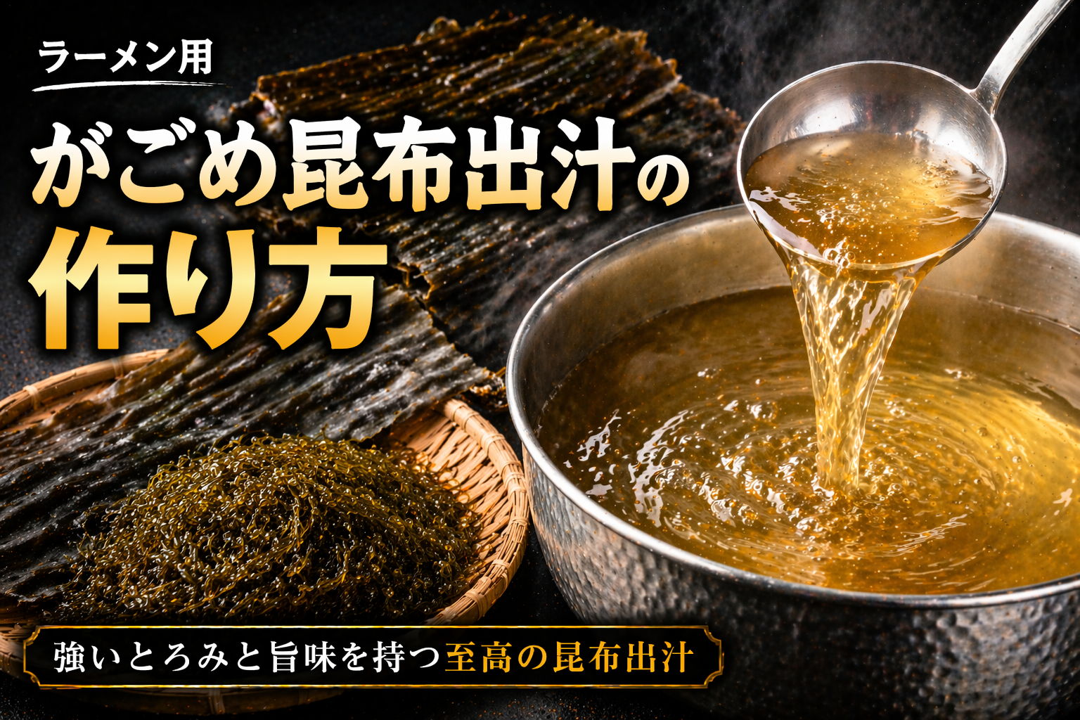 がごめ昆布出汁とは、主に北海道函館周辺で採れるがごめ昆布から旨味成分を抽出した出汁であり、その特徴は強い粘りと濃厚な旨味、そして独特のとろみのある口当たりにあるが、本質はフコイダンやアルギン酸といった粘性多糖類の含有量の高さにある。まず論点として重要なのは、がごめ昆布は他の昆布に比べて粘性成分が非常に多く、抽出時にスープにとろみを与える点であり、これにより単なる旨味だけでなく、口当たりそのものが変化するという構造を持つ。この特性はラーメンにおいて「粘度によるコク」を付加する要素として機能する。次に分解すると、がごめ昆布は低温でも成分が溶出しやすく、水出しでも十分な旨味と粘りを得ることができるが、高温で長時間加熱すると粘りが過剰になり、スープ全体のバランスを崩す可能性がある。この違いは多糖類の溶出量とその粘度特性に起因する構造的な差異である。さらに整理すると、がごめ昆布出汁は単体ではやや重さが出やすい一方で、魚介系や動物系出汁と組み合わせることで、味の厚みと口当たりを補強する役割を担い、全体の満足感を高める方向に作用する。このように、がごめ昆布出汁は旨味と粘度を同時に設計できる特殊な出汁であり、ラーメンにおいては味の質感そのものをコントロールするための重要な選択肢として位置付けられる。