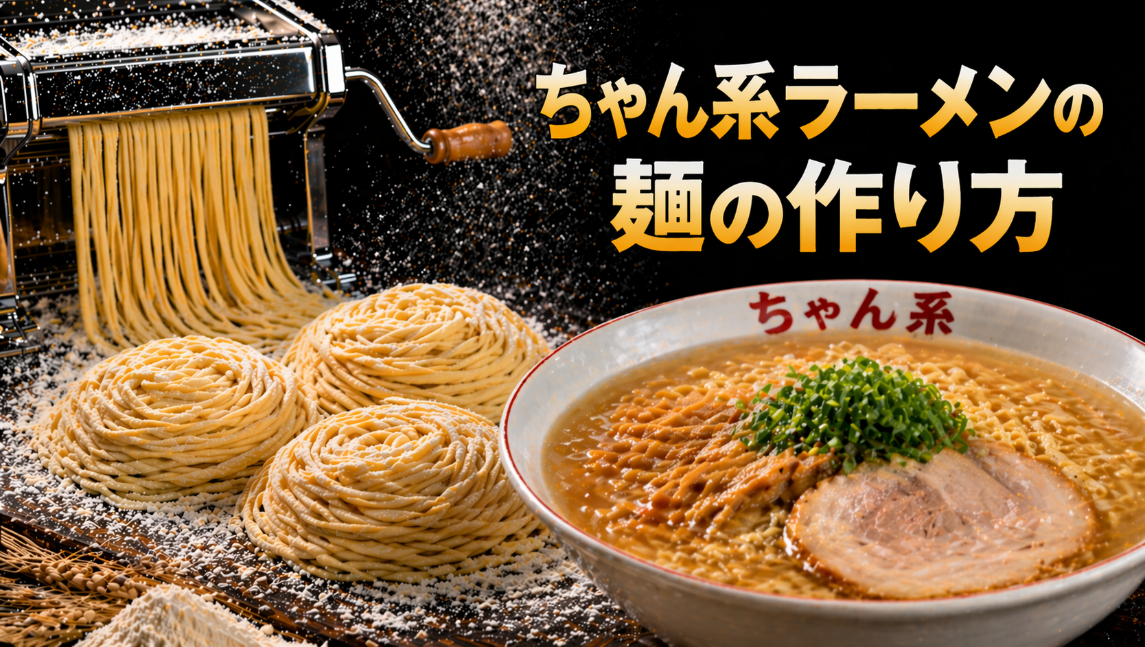 小麦粉は麺の骨格そのものを形成する素材であり配合や選定によって食感・風味・色味までもが大きく変化するため例えば同じ製法でも粉の種類を変えるだけで全く異なる麺になるほど重要な役割を担っており、その中で小麦粉に含まれるタンパク質量はグルテン形成に直結しその量が多いほどコシは強くなるが例えばパン用強力粉のように高タンパクすぎると重たい食感になりやすくちゃん系の軽やかさとは相性が悪くなるため調整が必要であり、さらにちゃん系ラーメンでは強すぎないグルテン形成が理想とされており例えば中力粉寄りの設計を採用することで噛みごたえを残しながらも過剰な弾力を抑えたバランスの良い麺に仕上げることができ、加えて軽やかさとしなやかさのバランスを実現するためには小麦粉のブレンド比率が重要となり例えば複数の粉を組み合わせることで硬さだけでなく口当たりの柔らかさや滑らかさを細かく調整することが可能になり、そのうえ使用する粉の種類によって麺の仕上がりは大きく変化し例えば灰分の少ない粉を使えば透明感のある見た目になり逆に灰分が多いと風味は出るがやや重たい印象になるなど設計意図が明確に反映され、結果としてこれらの要素が組み合わさることで小麦粉は単なる原料ではなく麺全体のキャラクターを決定づける存在となり例えば軽さ・コシ・滑らかさのバランスが整ったときに初めてちゃん系らしい食べやすさが成立する。