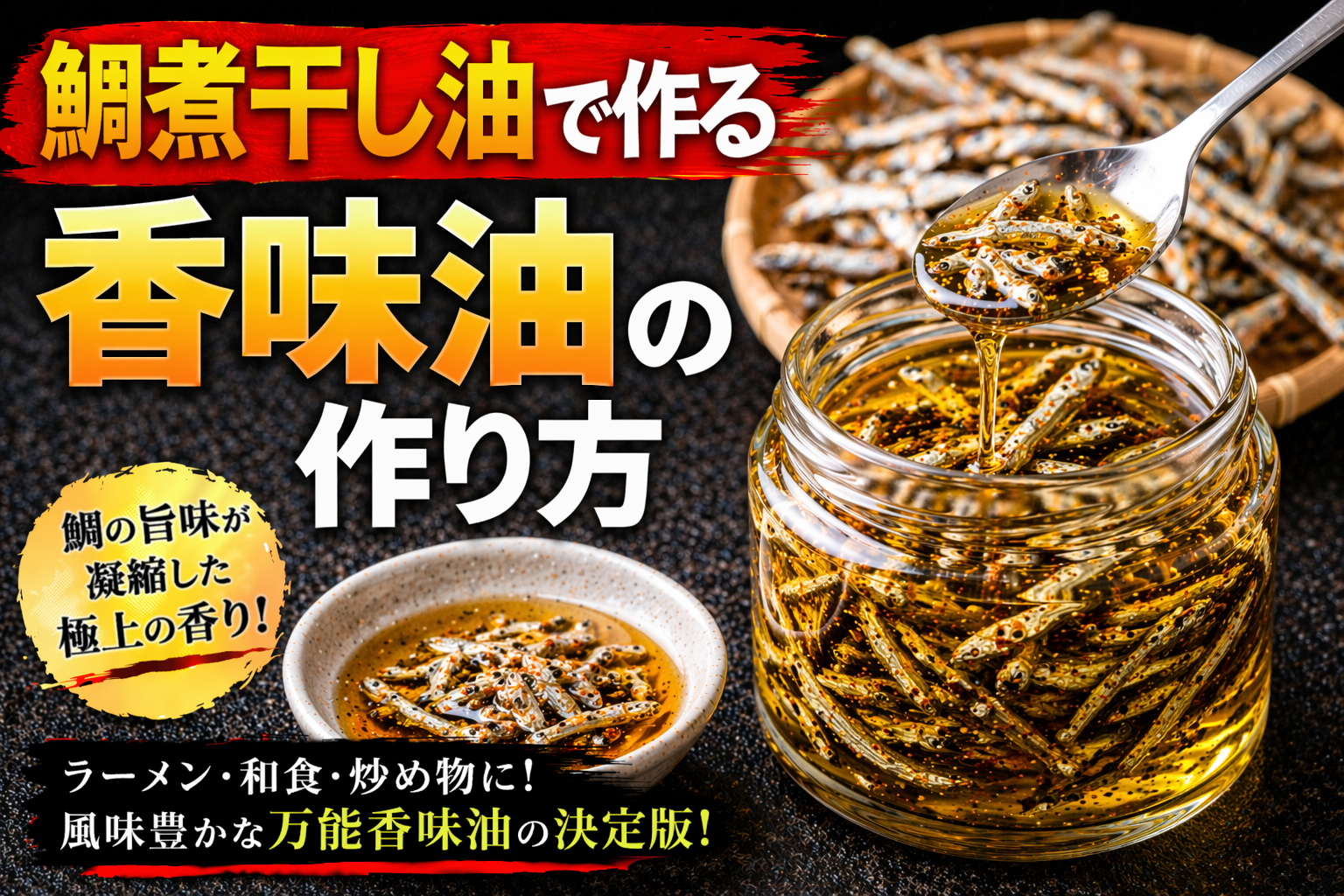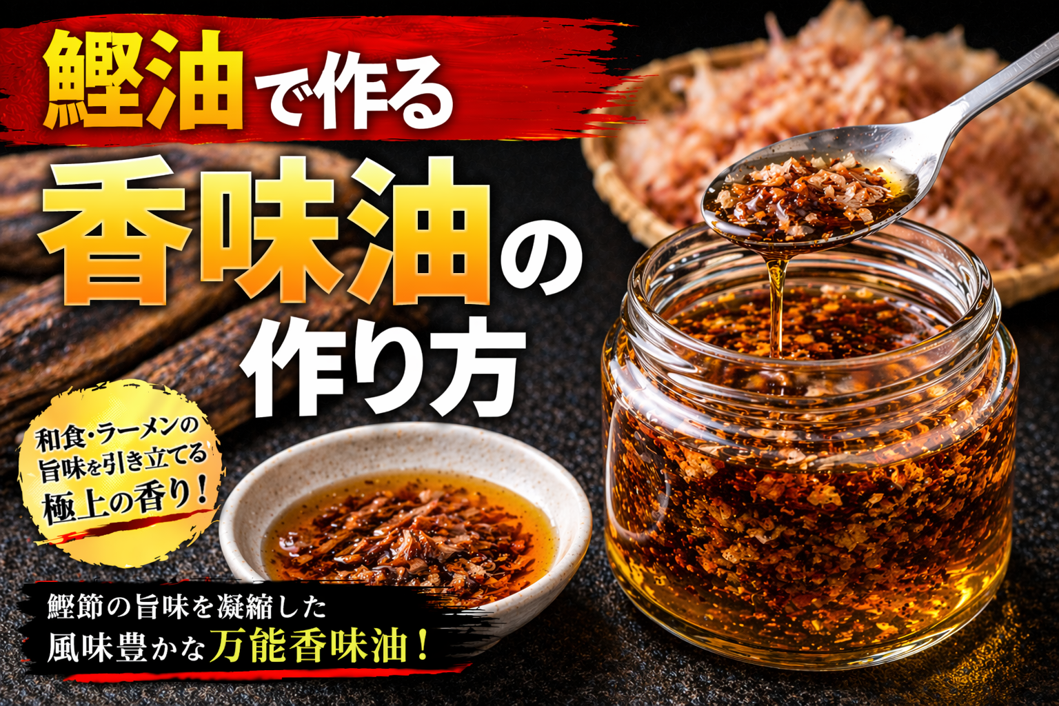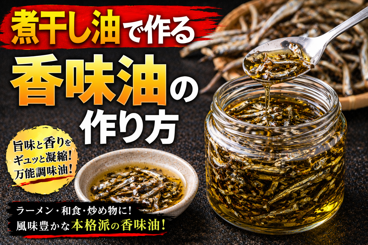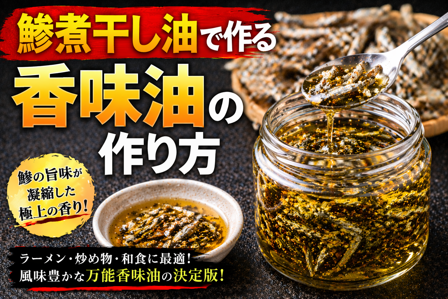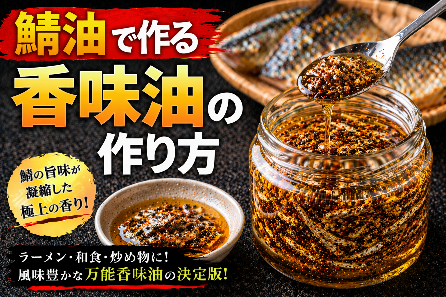 魚介系香味油とは、煮干しや鰹節、宗田節、エビ、イカなどの魚介素材を油で加熱・抽出し、その旨味と香りを油に移した香味油であり、ラーメンにおいては風味の方向性を明確にする重要な要素である。論点として重要なのは、この油が単なる旨味の補強ではなく、「魚介の個性を香りとして表現する設計」を持つ点にある。分解して考えると、魚介素材にはイノシン酸などの旨味成分が豊富に含まれており、加熱によってこれらが油に溶け込むことで、スープに加えた際に味の奥行きと広がりが生まれる。また、魚介特有の香り成分が油に移行することで、食べる前から明確な方向性を感じさせるトップノートを形成する。この香りはラーメン全体の印象を規定する力を持ち、特に醤油系や淡麗系のスープとの相性が高い。さらに整理すると、魚介系香味油は「旨味と香りで味の軸を補強する設計」と言える。スープ単体では不足しがちな風味の厚みを補いながら、魚介の個性を前面に出すことで差別化を図る役割を持つ。一方で、魚介素材は加熱条件によって苦味や生臭さが出やすく、抽出温度や時間の管理を誤ると品質が大きく低下する。また、香りが強すぎると全体のバランスを崩すため、使用量の調整も重要となる。したがって、魚介系香味油とは「魚介の旨味と香りを油で再構築する技術」であり、ラーメンの方向性と完成度を決定づける重要な設計要素として位置づけられる。