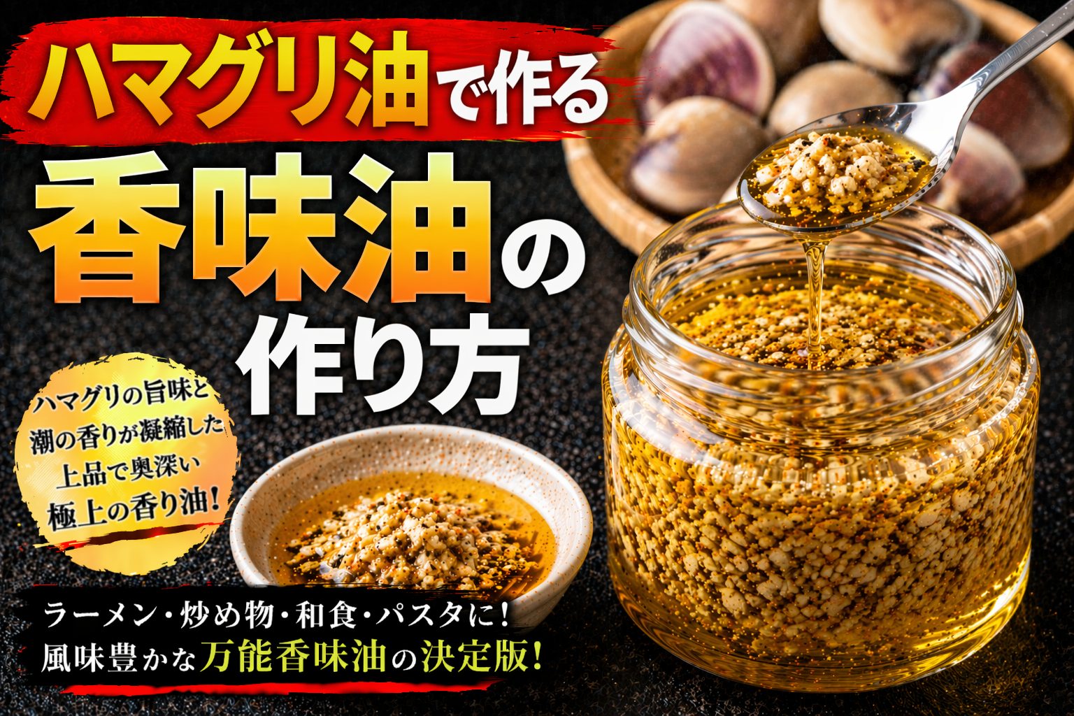 貝系香味油とは、牡蠣やあさり、はまぐり、しじみ、ホタテなどの貝類を油で加熱し、その旨味と特有の香りを抽出した香味油であり、ラーメンにおいては繊細かつ深い旨味を付与する役割を持つ。論点として重要なのは、この油が「強いコクではなく、透明感のある旨味を補強する設計」を持つ点にある。分解して考えると、貝類にはコハク酸を中心とした旨味成分が豊富に含まれており、加熱によってこれらが油に移行することで、独特の奥行きと余韻を持つ風味が形成される。また、貝特有の海の香りが油に溶け込むことで、スープに加えた際に軽やかでありながら印象的なトップノートを生み出す。この香りは魚介系とは異なり、より丸みがあり上品な印象を与える点が特徴である。さらに整理すると、貝系香味油は「軽さと旨味の深さを同時に成立させる設計」と言える。淡麗系スープに対しては透明感を損なわずに味の厚みを補い、濃厚系に対しては重さを緩和しながら旨味の層を追加する役割を担う。一方で、加熱温度や抽出時間を誤ると生臭さや苦味が出やすく、素材の鮮度も風味に大きく影響するため、扱いは繊細である。また、香りが過剰になると全体のバランスを崩すため、使用量の調整も重要となる。したがって、貝系香味油とは「上品な旨味と香りで味の奥行きを設計する香味油」であり、ラーメンに繊細な個性と深みを与えるための高度な技術要素として位置づけられる。