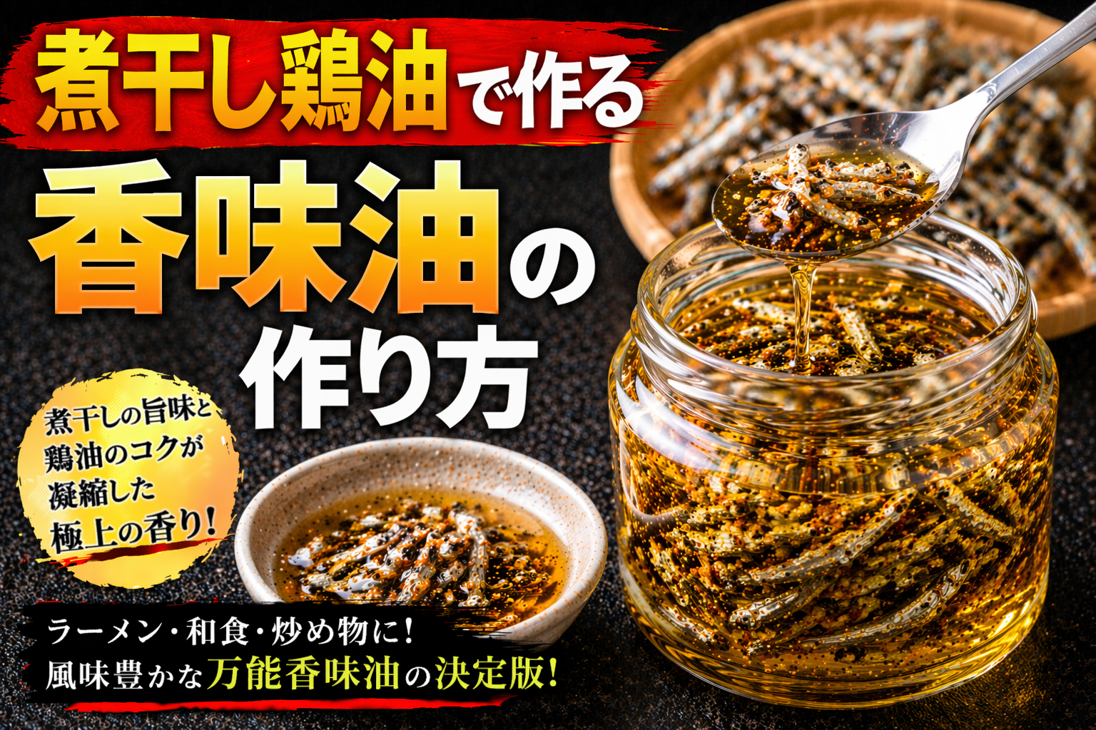 香味油とは、食材や香味野菜、スパイスなどを油で加熱抽出し、香りと風味を付与する調味油である。ラーメンにおいては香りの設計を担い、味の印象を大きく左右する重要な要素である。