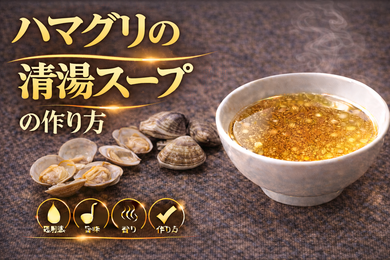 ハマグリの清湯スープとは、ハマグリに含まれるコハク酸とグルタミン酸を中心とした旨味成分を、透明感を保ちながら抽出することで成立する貝系スープであり、論点は「なぜハマグリは上品で強い旨味を両立できるのか」にある。その背景には、ハマグリ特有の旨味バランスとミネラル成分が関係しており、アサリに比べてよりクリアで雑味の少ない味わいを形成しやすい特性を持つ。特にコハク酸は旨味の厚みと余韻を生み出し、グルタミン酸と組み合わさることで、単体でも完成度の高い味を構築できる点が特徴となる。分解すると、まず砂抜きによって不純物を除去し、雑味の原因を取り除く工程が前提となる。その後、加熱によって殻が開くタイミングで旨味が一気に溶出するため、この瞬間を起点に過度な加熱を避けることが重要となる。長時間の加熱は身の収縮とともに風味の低下や濁りの原因となるため、短時間で抽出を完了させる設計が求められる。また、ハマグリは水分中の塩分濃度や温度によって味の出方が変化するため、環境条件の調整も品質を左右する要因となる。整理すると、このスープは①コハク酸とグルタミン酸による複合的な旨味構造、②砂抜きと加熱タイミングの精度、③短時間抽出による透明性の維持という三つの要素で成立している。ここから得られる示唆は、ハマグリの清湯スープは単なる貝出汁ではなく、素材のポテンシャルを最大限に引き出すための工程設計が重要なスープであり、加熱の強度とタイミングの精度がそのまま味の完成度と上品さに直結するという点にある。