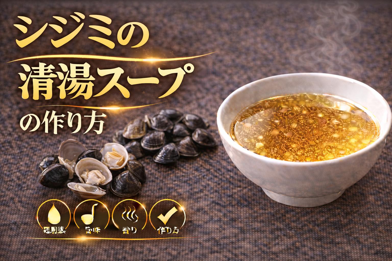 シジミの清湯スープとは、シジミに含まれるコハク酸を中心とした旨味成分と独特の風味を、透明感を保ちながら抽出することで成立する貝系スープであり、論点は「なぜシジミは小さな素材でありながら強い旨味と機能性を持つのか」にある。その背景には、シジミが持つ高いコハク酸含有量とミネラルバランスがあり、これが他の貝類とは異なるキレのある旨味と余韻を形成する要因となる。特にコハク酸は旨味に軽い苦味やシャープさを伴うため、味に輪郭を与え、単体でも成立する力強さを持つ点が特徴である。一方でシジミは風味が繊細であり、加熱条件を誤ると雑味や濁りが出やすいため、抽出の精度が重要となる。分解すると、まず砂抜きを丁寧に行い不純物を除去することで、雑味の発生要因を排除する工程が前提となる。その後、加熱によって殻が開くタイミングで旨味が放出されるため、この瞬間を基準に短時間で抽出を完了させることが求められる。長時間の加熱は身の崩れや風味の劣化を招き、清湯としての透明性を損なう原因となるため、火加減と時間管理が品質を左右する。整理すると、このスープは①コハク酸を中心としたシャープな旨味構造、②砂抜きによる前処理の精度、③短時間抽出による非乳化設計という三つの要素で成立している。ここから得られる示唆は、シジミの清湯スープは単なる軽い出汁ではなく、明確な輪郭と機能性を兼ね備えた設計型スープであり、加熱のタイミングと前処理の質がそのまま味の完成度と透明感に直結するという点にある。