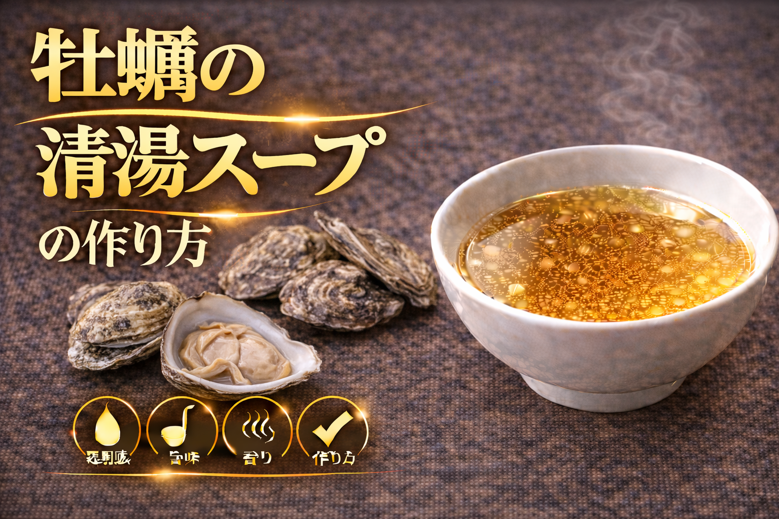 牡蠣の清湯スープとは、牡蠣に含まれるグリコーゲン由来の甘味とアミノ酸、さらにミネラル成分を透明感を保ったまま抽出することで成立する貝系スープであり、論点は「なぜ牡蠣は強いコクと繊細さを同時に成立させるのか」にある。その背景には、牡蠣特有の旨味構造があり、グルタミン酸やコハク酸に加え、豊富なミネラルが味に厚みと複雑さを与えることで、単体でも強い存在感を持つスープが形成される点がある。特にグリコーゲン由来の甘味は他の貝類よりも顕著であり、これが旨味と重なり合うことで独特のコクと余韻を生み出す要因となる。一方で牡蠣は風味が強く、加熱条件を誤ると生臭さや苦味が前面に出やすいため、抽出の精度が品質を大きく左右する素材でもある。分解すると、まず下処理として汚れやぬめりを丁寧に除去し、雑味の原因を排除する工程が前提となる。その後、弱火から中火で穏やかに加熱し、旨味が溶出するタイミングで過度な加熱を避けることで、透明感と風味のバランスを維持することが重要となる。高温で長時間加熱するとタンパク質の流出や乳化が進み、濁りやえぐみの原因となるため、火加減の制御が不可欠である。整理すると、このスープは①グリコーゲン由来の甘味と複合的な旨味構造、②強い風味を制御する前処理と加熱管理、③非乳化を維持する短時間抽出という三つの要素で成立している。ここから得られる示唆は、牡蠣の清湯スープは単なる貝出汁ではなく、濃厚さと透明感を両立させる高度な設計型スープであり、素材の状態と抽出条件の精度がそのまま味の完成度と再現性に直結するという点にある。