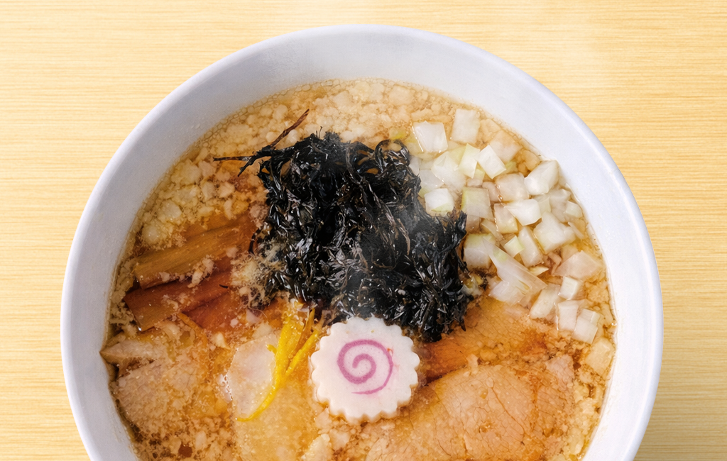 新潟五大ラーメンの一つ、“燕三条系”の代表格「酒麺亭 潤」。こちらのCoCoLo新潟店では、背脂たっぷりの濃厚醤油ラーメンを駅ナカで楽しむことができます。スープは煮干しの香りが強く、背脂の甘みと絶妙にマッチ。極太の縮れ麺は力強いコシがあり、食べ応え抜群です。トッピングの玉ねぎがシャキシャキとした食感を添え、全体のバランスを整えます。新潟ラーメン文化を象徴する“燕三条系”を、旅の合間に気軽に味わえるのが魅力です。