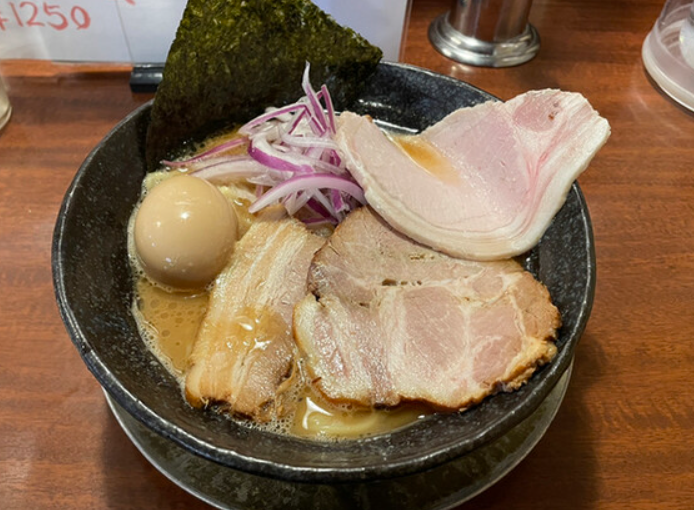 「麺屋 松」は、濃厚魚介豚骨スープが特徴の行列店。見た目はこってりながらも、後味は意外にスッキリしており、丁寧な下処理が感じられる上品な一杯です。特に人気の「特製つけめん」は、旨味が凝縮された濃厚スープと極太麺の相性が抜群。麺はしっかりとしたコシがあり、噛むたびに小麦の香りが広がります。チャーシューや味玉などトッピングの完成度も高く、一杯の中に“職人のこだわり”が詰まっています。味・ボリューム・満足感、すべてにおいて隙のない名店です。