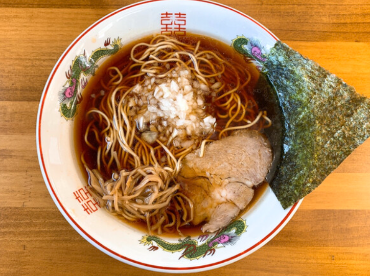 創業以来、地元の人々に親しまれてきた「一福食堂」。昔ながらの食堂スタイルで、家庭的な温かみを感じる料理が評判です。中でも「中華そば」は、あっさりとした醤油スープに、鶏ガラと煮干しの出汁が絶妙に調和した一杯。麺は中細のストレートで、スープとの絡みがよく、食べるたびに懐かしさと優しさが広がります。トッピングはシンプルながら、チャーシュー・ナルト・メンマ・ネギとバランスの取れた構成。どこか昭和の香りを感じる味わいで、地元民の“日常の一杯”として愛されています。
