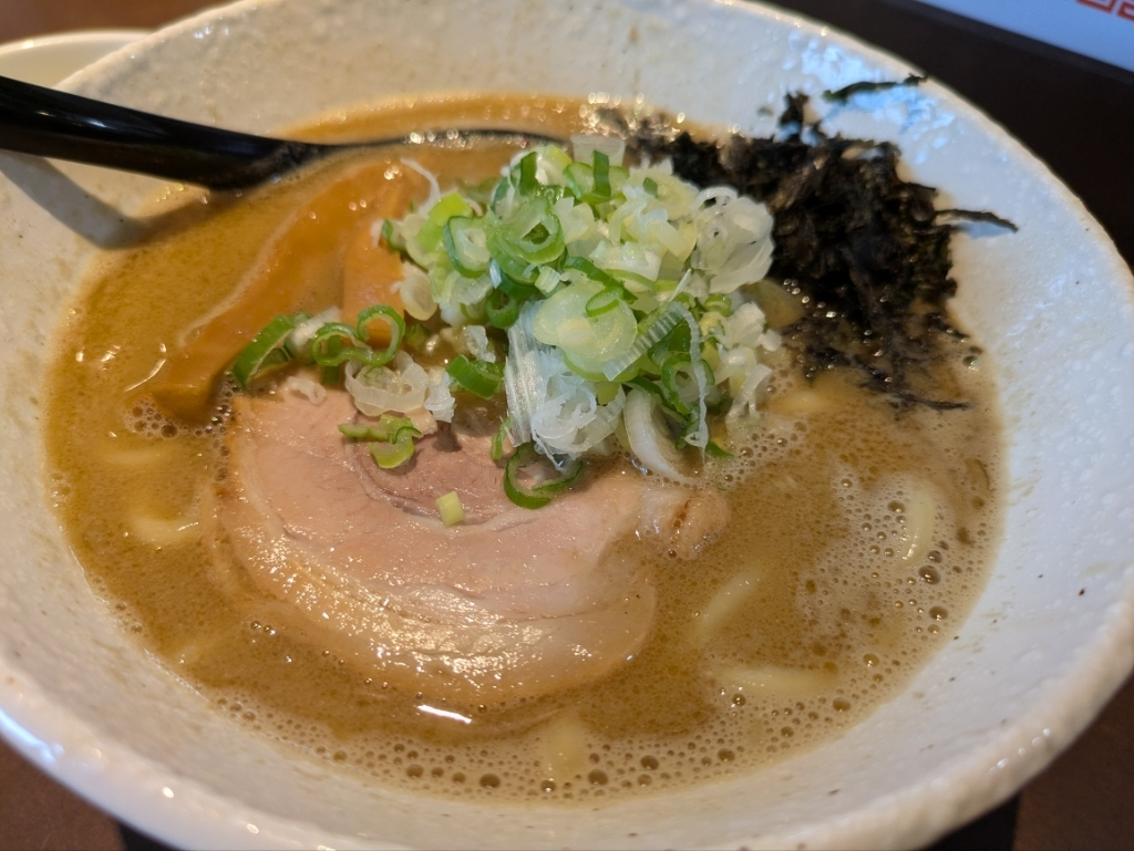 白山市の海沿いエリアにある「ラーメンとんとん CCZ店」は、観光やドライブ客にも人気のスポット。濃厚な豚骨ベースに背脂を効かせた“北陸流こってりラーメン”が看板メニューです。スープはまろやかでクリーミー、麺は中太のストレートでしっかりとした食感。チャーシューや煮卵などトッピングもボリューム満点です。海を眺めながら味わう一杯は格別で、週末は家族連れやライダーで賑わいます。金沢・白山エリアの定番ドライブグルメとしてもおすすめ。
