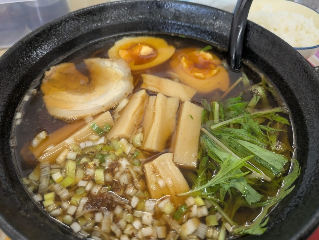 「うめばち屋」は、松任駅近くにある知る人ぞ知る隠れ家的ラーメン店。店主が一人で切り盛りするアットホームなお店で、手作りのスープと具材にこだわっています。人気メニューの「中華そば」は、あっさりとした醤油ベースでどこか懐かしい味わい。スープの透明感と優しい口当たりが特徴です。店内はカウンター中心の落ち着いた空間で、地元の常連が通う“穴場的存在”。派手さはないものの、温かみのあるラーメンが心に残る一杯です。