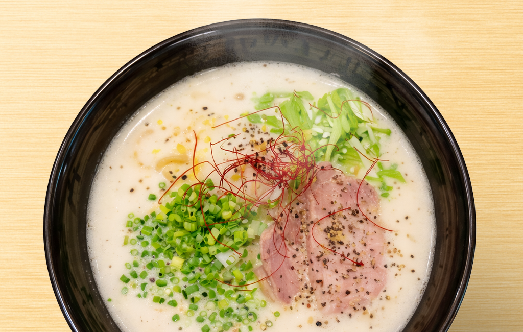 看板メニューの「天然とんこつラーメン」は、臭みのないまろやかなスープが特徴で、豚骨の旨味がしっかりと感じられます。極細ストレートはスープとの相性が抜群で、茹で加減を「かため」「やわらかめ」など細かく調整可能。個別の仕切りがある“味集中カウンター”で、誰にも気を使わず一杯を堪能できるのも魅力です。観光客や出張客にも人気で、「名古屋で本場・博多の味を味わいたい」ときにぴったりの一軒です。