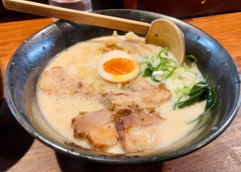 「一番軒 今池FC店」は、名古屋で圧倒的な知名度を誇る豚骨ラーメンチェーンのひとつ。スープは九州風の白濁豚骨で、クリーミーながらクセのない味わいが特徴です。看板メニューの「熟成豚骨ラーメン」は、長時間煮込んだスープの深みと細麺の組み合わせが絶妙。トッピングには香ばしいチャーシューとキクラゲ、ネギが添えられ、シンプルながら完成度の高い一杯です。深夜まで営業しているため、飲み会帰りのシメにもぴったり。安定した味と手軽さで、千種の定番ラーメンとして愛されています。