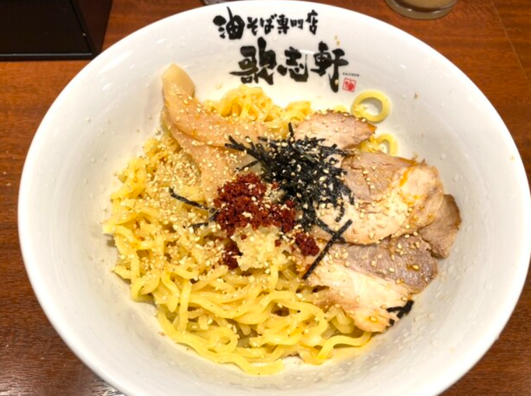 「油そば専門店 歌志軒 刈谷駅前店」は、全国的にも人気の“油そばブーム”を牽引するブランドの一つ。スープのない“まぜそば”スタイルが特徴で、特製の醤油ダレと香味油を絡めて食べる新感覚の一杯が楽しめます。刈谷駅前店では、スタンダードな「油そば」はもちろん、辛味やにんにくを追加したカスタムも人気。中太ストレート麺はコシが強く、タレとしっかり絡んで最後まで旨味が続きます。卓上の酢やラー油で味変すれば、無限に広がるアレンジが可能。手軽に食べられる上、ボリュームも満点。仕事帰りに“さっと一杯”を楽しむのに最適な刈谷駅前の名店です。