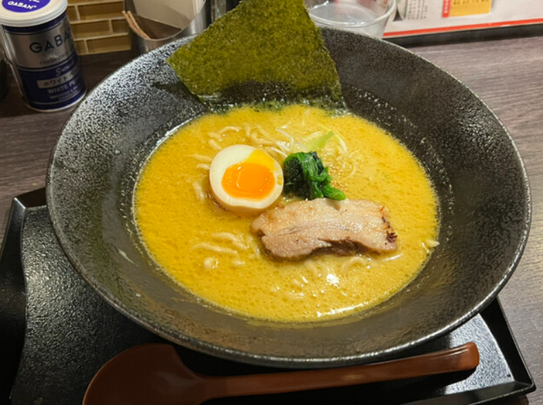 和洋折衷のエッセンスを取り入れたメニュー構成が特徴で、看板メニューの「焦がし味噌ラーメン」は香ばしさと旨味が絶妙。濃厚な味噌スープに焦がしネギ油が香り立ち、深いコクの中にほんのりとした甘みが広がります。
