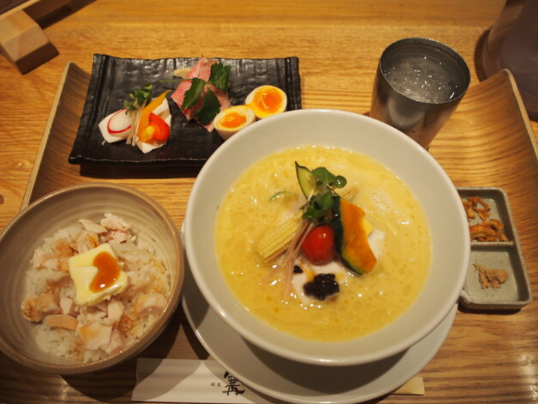 器や盛り付けも美しく、女性客の支持が高いのも納得です。夜は限定の“トリュフまぜそば”やワインペアリングもあり、ラーメンの枠を超えた新感覚ダイニングとして注目されています。