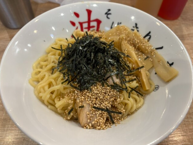 東京発の油そば専門店「きりん寺」は、関西でも人気を拡大中。スープのない“まぜ系”ラーメンで、特製醤油ダレと香味油のコクがクセになります。熱々の麺にタレを絡め、卵黄を混ぜて食べると至福の瞬間。