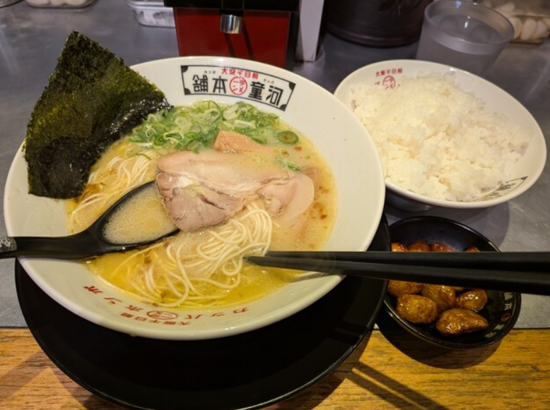 「河童ラーメン本舗」は、関西に多数展開する人気チェーン。スープは豚骨をベースにしたクリーミーな味わいで、臭みがなくまろやか。細麺との相性が良く、替え玉も人気です。