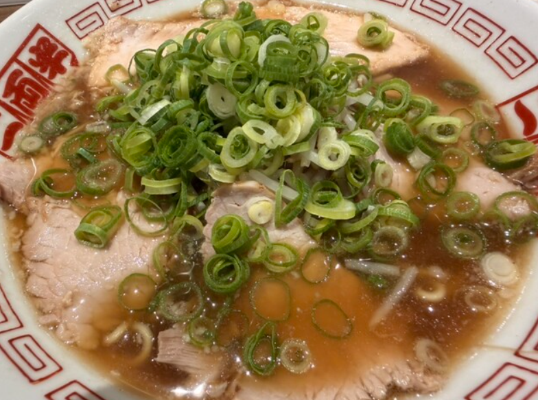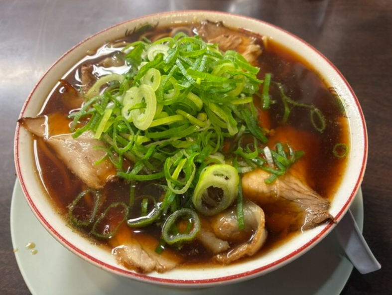 京都発祥の老舗「新福菜館」。黒い醤油スープが印象的な中華そばで、京橋でも根強い人気を誇ります。スープは濃口醤油の深いコクと香ばしさが特徴で、見た目以上にまろやか。