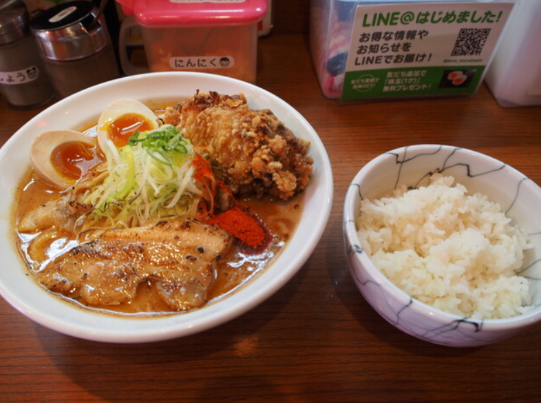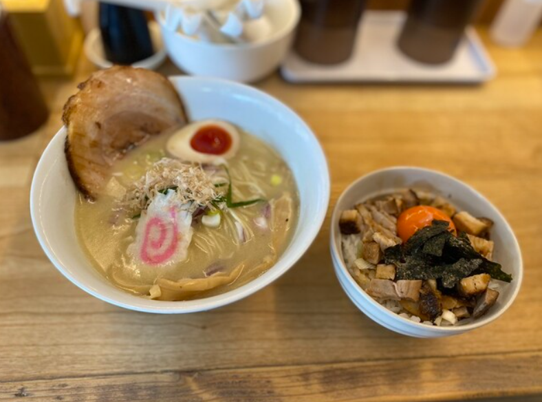 特製の極太麺はモチモチでコシが強く、スープと肉の旨味をしっかりと支える存在。「肉増し」や「スタ丼風トッピング」など食べ応え抜群のメニューもあり、男性客を中心に行列が絶えません。スタミナをつけたい日や、がっつり食べたいときに間違いなしの一軒です。