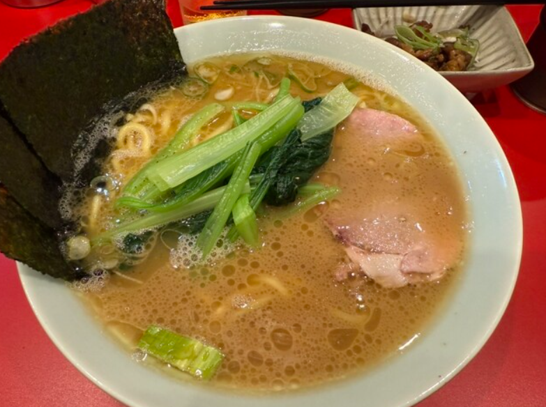 海苔・ほうれん草・チャーシューという定番トッピングの黄金バランスは健在。ライス無料サービスもあり、ガッツリ食べたい日におすすめの一杯です。