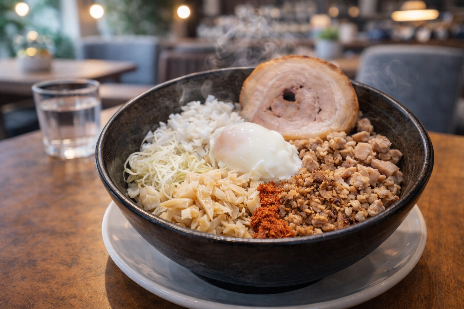 隠れ家的存在ながら高評価を維持し続ける人気店「かねかつ」。スープは動物系+魚介系を合わせたハイブリッドで、深みのある味わいとキレの良い醤油が特徴。麺は細めのストレートで伸びにくく、スープの旨味をしっかり引き立てています。