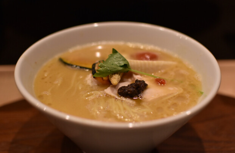ミシュランガイドにも掲載される“ラーメン×フレンチ”という新感覚の名店。看板メニューは「鶏SOBA」。澄んだ鶏清湯スープは香りが非常に繊細で、まるで上質なブイヨンスープのような味わい。麺は国産小麦を使った自家製麺で、軽やかな口当たりとしなやかな食感が特徴。トッピングには鶏チャーシュー、あさり、揚げごぼうなど、独創的で美しい盛り付けが印象的。女性人気も高く、銀座で“洗練されたラーメン”を食べたい時にベストな選択肢です。