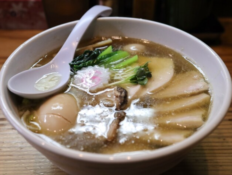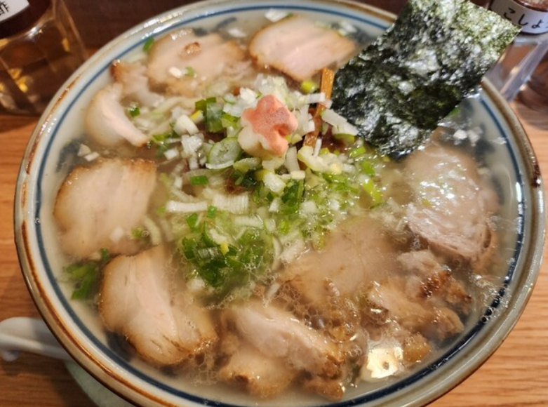 新宿発祥の人気ブランド「たかはし」。銀座店は上品な“焼きあご出汁”が大人気。スープは、あご(飛び魚)を炭火で焼いて旨味を凝縮させた唯一無二の味わい。透き通った塩スープは香ばしい香りと魚介の上品なコクが広がり、飲んだ瞬間に虜になる人も多い“黄金スープ”。麺は中細ストレートで喉ごしが良く、上品なスープを引き立てます。〆に“銀シャリ”を入れる雑炊が絶品で、最後まで丁寧に味わいたくなる一杯。外国人観光客も多く、銀座を代表する塩ラーメン店です。