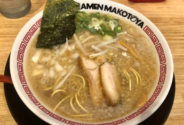 全国展開するラーメンチェーン「まこと屋」の福生店。牛骨ラーメンと鶏醤ラーメンの2看板が特徴です。