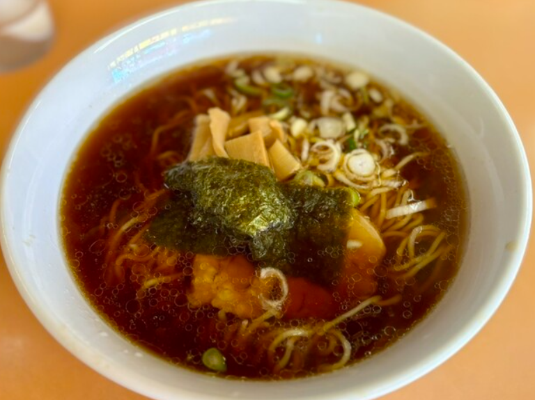 最後に紹介する「中華そば ごんべえ」は、あっさり系中華そばの名店。澄んだ醤油スープは、鶏ガラと野菜の旨味が優しく溶け込んだ味わいで、飲み進めるほどに体に染みるような感覚があります。細めのストレート麺がスープをきれいに持ち上げ、チャーシューやメンマも控えめながら丁寧な仕事ぶり。派手さはないものの、“毎日でも食べたいラーメン”として、地元の人の生活に溶け込んでいる一杯です。