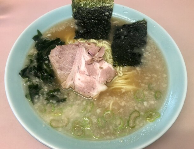 麺はラーショらしい柔らかめの中太麺で、スープとの馴染みがよく、ついついレンゲと一緒にかき込んでしまう一体感。卓上のニンニクやコショウで味変する楽しみも含め、“朝から食べられる背徳的ラーメン”として愛されています。