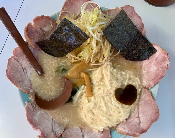 河辺駅北側の住宅街に位置する「ラーメン豚好 野上町店」は、ガッツリ系のボリュームと中毒性の高い味で人気を集める一軒。豚骨ベースに醤油ダレを合わせたスープは、しっかりとしたコクとキレを併せ持ち、背脂の甘みが重なることで“やみつき系ラーメン”へと昇華しています。麺はワシワシ系寄りの太麺で、噛むほどに小麦の味が広がるパワフルなタイプ。チャーシューも厚切りで存在感たっぷり、ニンニクや野菜増しのトッピングと組み合わせれば、一杯で一日のエネルギーをチャージできるほどの満足感です。二俣尾から車で向かい、青梅エリアで“ガッツリ一杯”を楽しみたい日に最適な選択肢です。