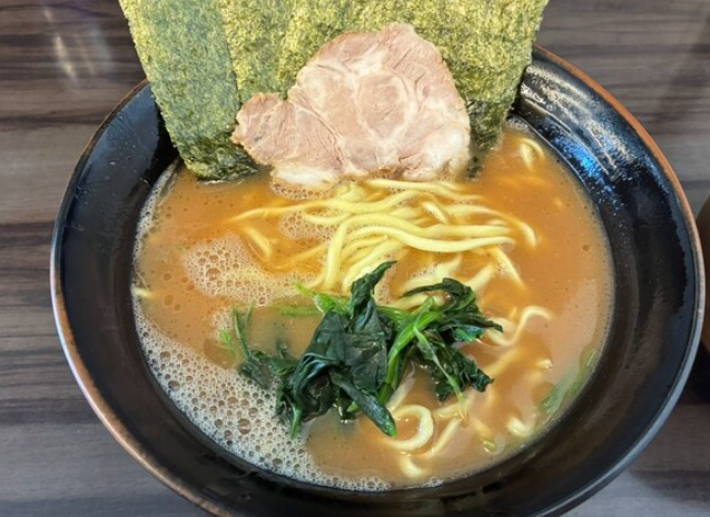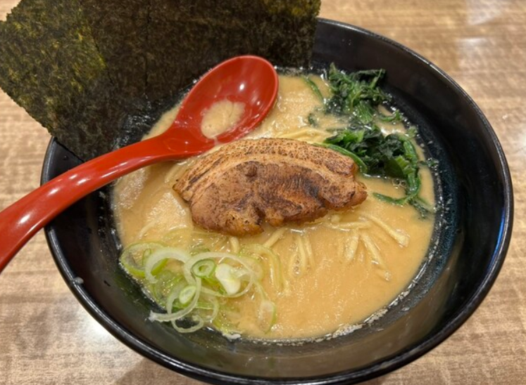 横浜家系らーめん 武術家は、赤い看板が印象的な濃厚家系ラーメンの人気店で、豚骨をしっかりと炊き出した骨太なスープが自慢です。スープはとろみのある白濁タイプで、醤油ダレのキレと鶏油のコクがガツンと押し寄せ、まさに“白ご飯が止まらなくなる”味わい。太く短めの麺はモチモチとしており、スープとしっかり絡むため、ひと口ごとの満足感も抜群です。ほうれん草・海苔・チャーシューという鉄板トッピングに加え、卓上調味料でニンニク・豆板醤・お酢などを加えれば、味の変化も自在。「今日はパンチが欲しい!」という日に頼りになる、武闘派家系ラーメンです。