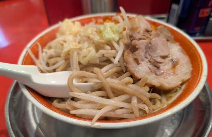 ラーメンタロー 大森の陣は、いわゆる“二郎系インスパイア”として人気のガッツリ系ラーメン店で、極太麺に山盛りのヤサイと分厚い豚、そしてニンニクとアブラが乗った、見るからにパワフルな一杯が楽しめます。スープは豚骨と醤油を強く効かせた非乳化寄りで、口に含むとキリッとしたしょっぱさと背脂の甘みが混ざり合い、極太のワシワシ麺と相まって“噛みしめながら食べるラーメン”といった印象。ニンニクやアブラ、カラメのコールによってジャンク度を自在に上げられるので、コンディションを考えながら注文するのがポイントです。お腹も気分もガツンと満たしたいときに、覚悟を決めて挑みたい一杯。