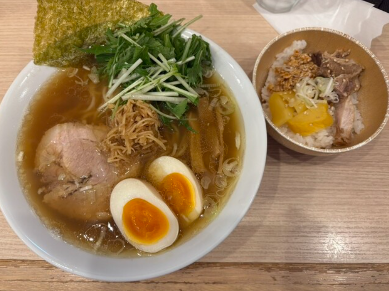 「めん処 羽鳥」は、出汁の香りを何より大事にしていることが伝わる、淡麗系ラーメンの人気店。透明感のあるスープをひと口飲めば、鶏の旨みをベースに、魚介や昆布のふくよかな香りが重層的に広がり、優しいのに物足りなさを感じさせない絶妙なバランスに驚かされます。醤油・塩いずれも評判が良く、醤油は香りの立ち方が華やか、塩は素材の旨みをストレートに楽しめるイメージ。麺はスープの邪魔をしない細ストレートで、滑らかな口当たりと、噛んだときに感じるほどよい弾力が心地よく、スープを運ぶ“脇役としてのプロ”のような存在です。チャーシューは低温調理のしっとりタイプで、脂の甘みと肉の旨みがじんわりと滲み出し、穂先メンマや薬味も含めて、丼の中のすべてが丁寧で上品な一杯。落ち着いてラーメンと向き合いたいときに訪れたいお店です。
